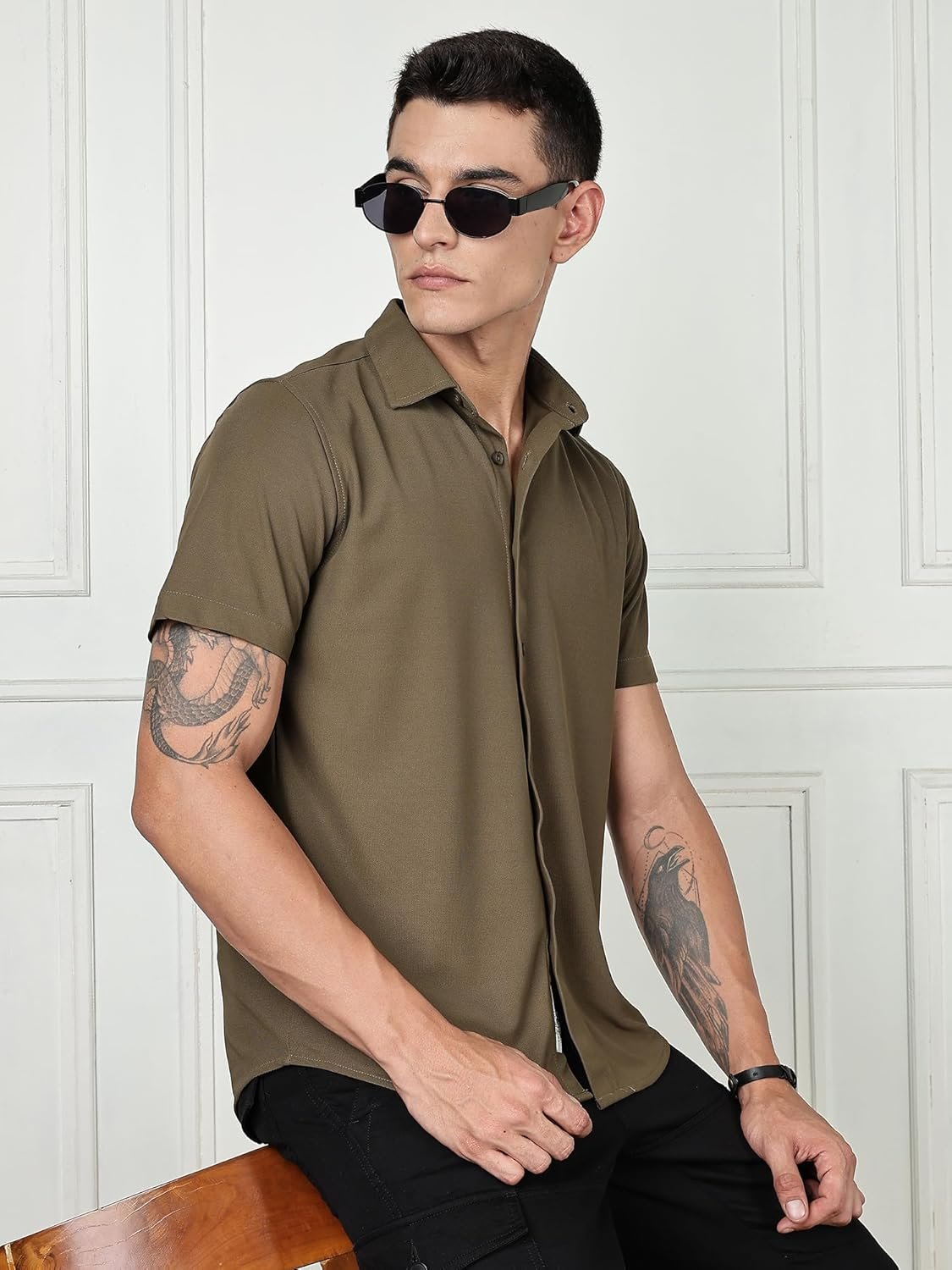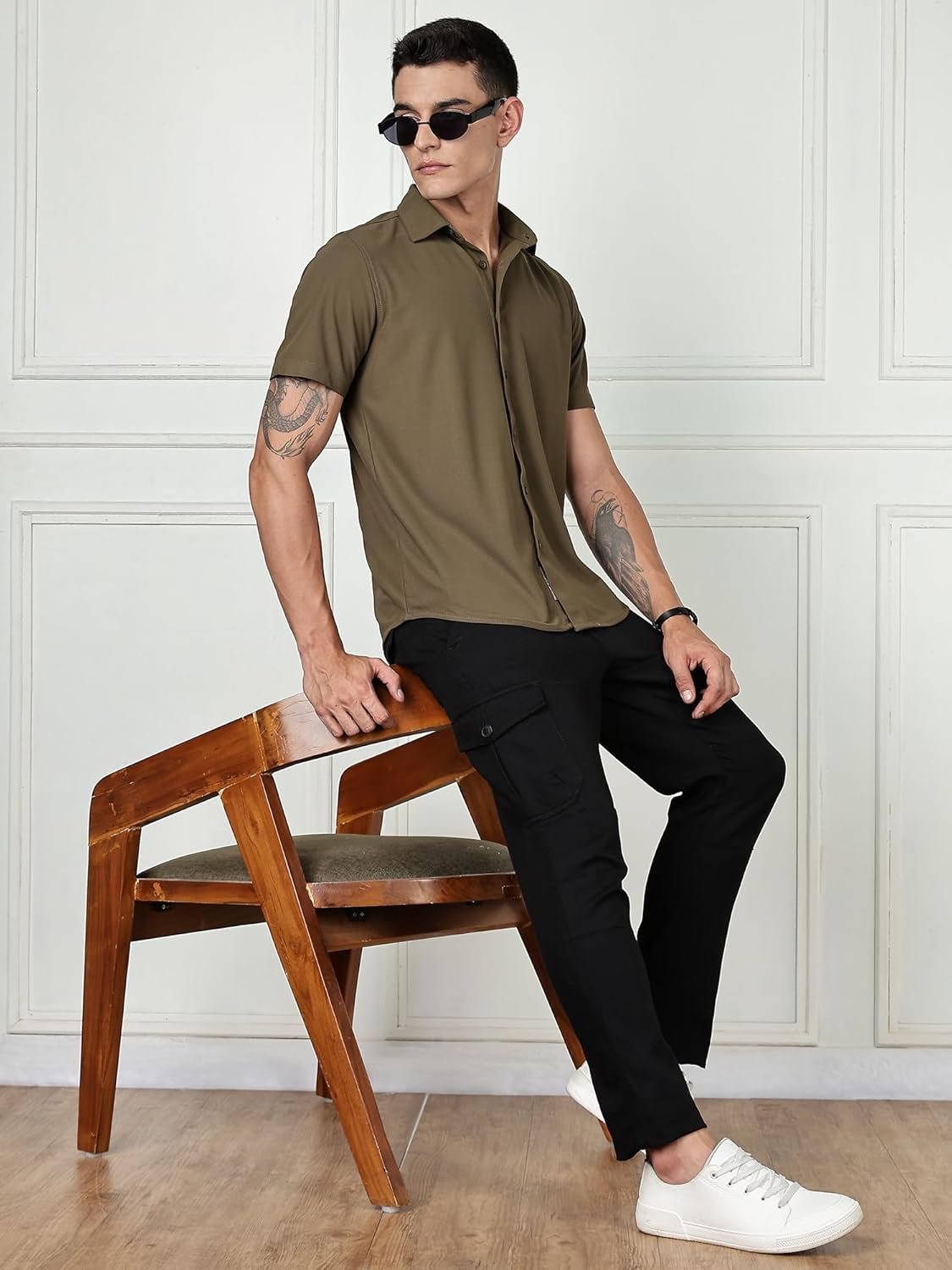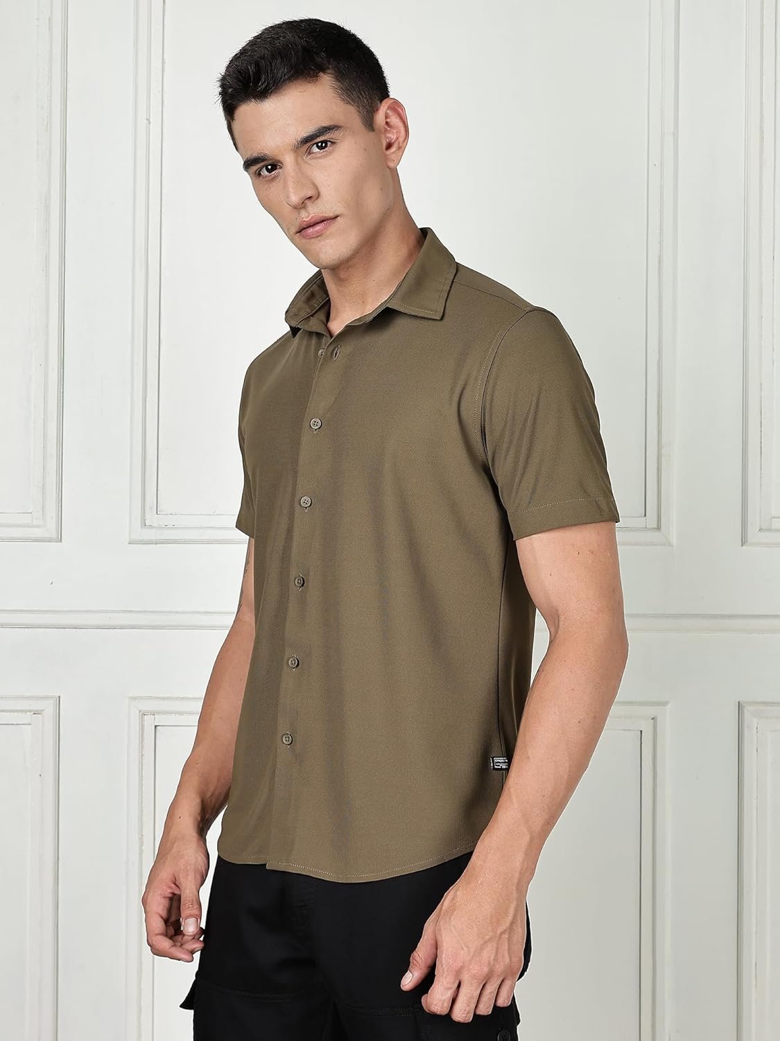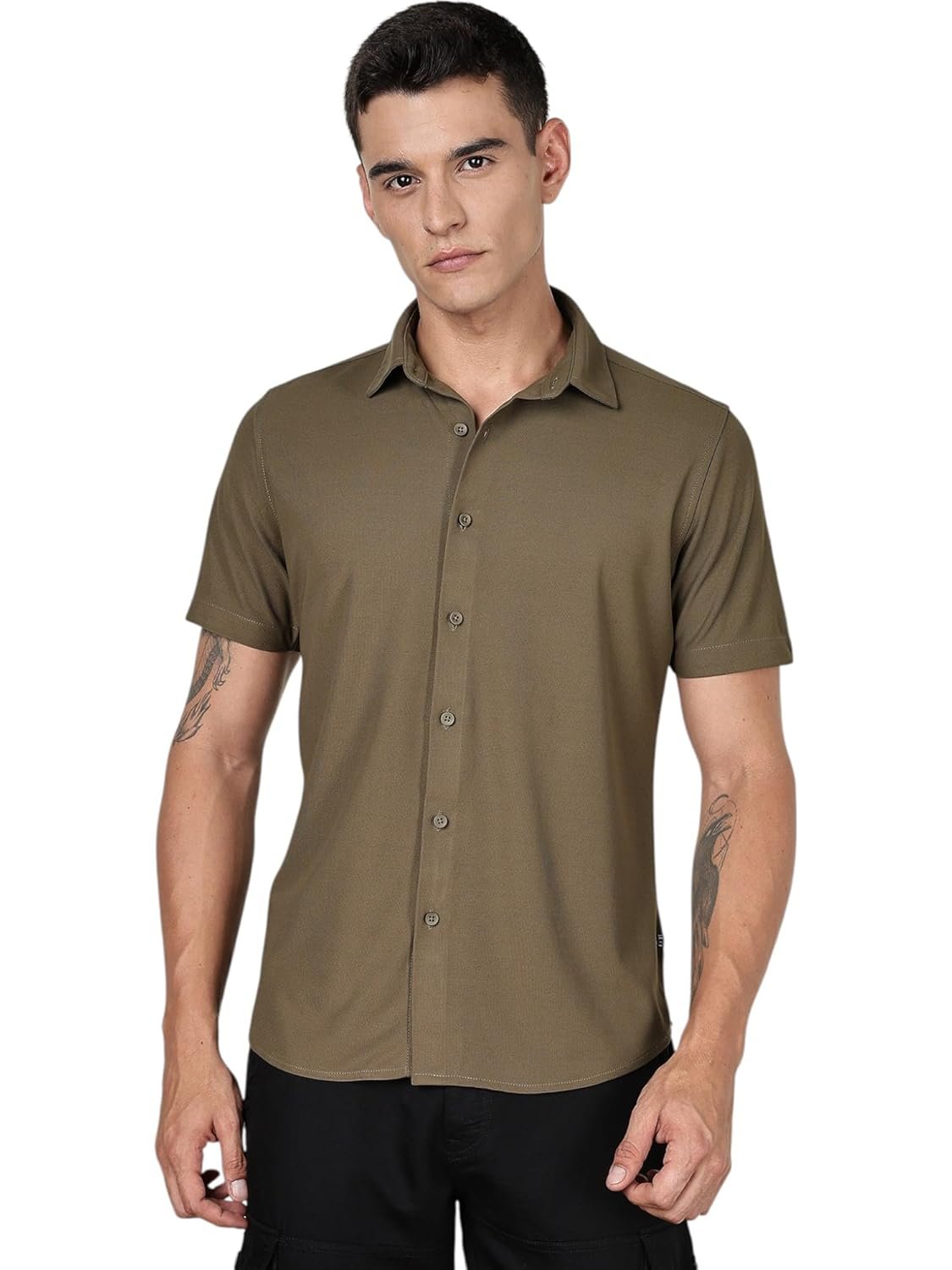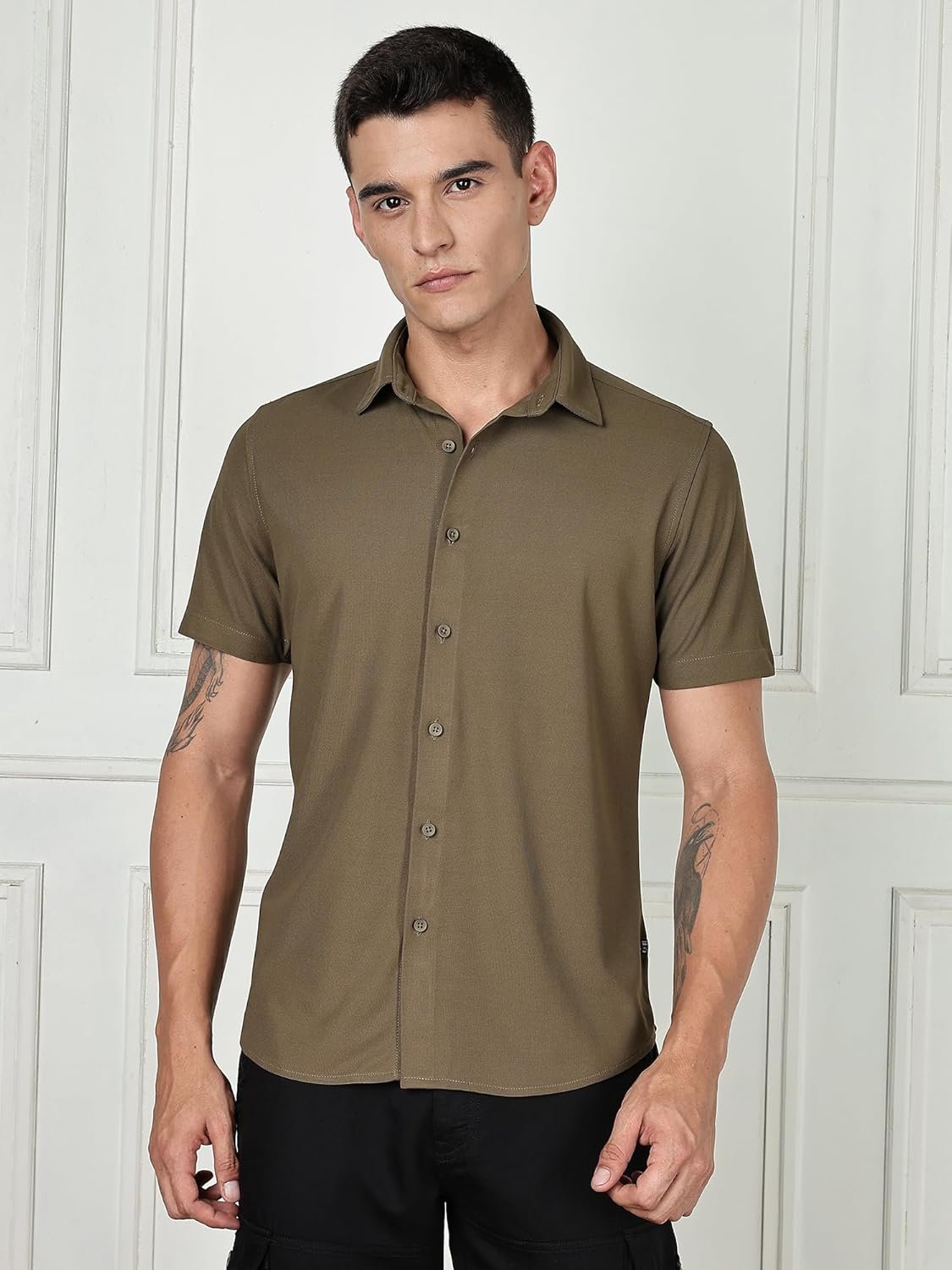 Thomas Scott Men’s | Premium | Spread Collar | Slim Fit | Short Sleeves | 4 Way Stretch | Coolmax | Knitted | Casual | Shirts for Men