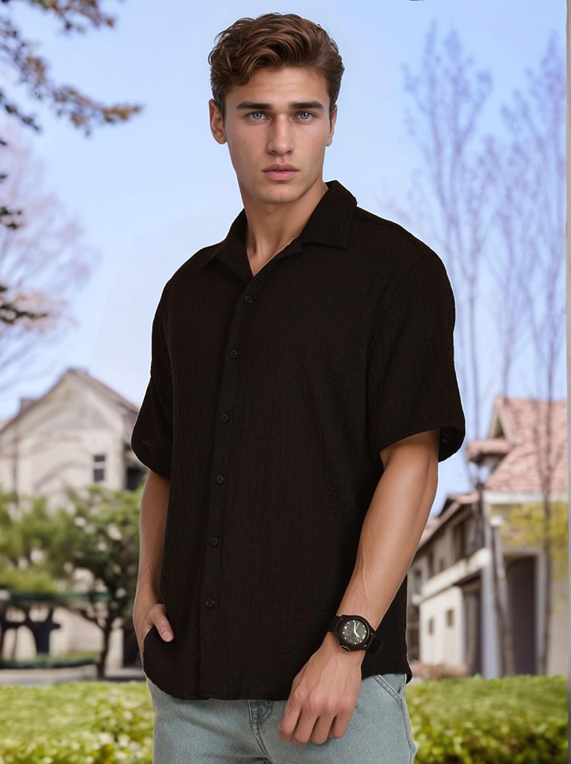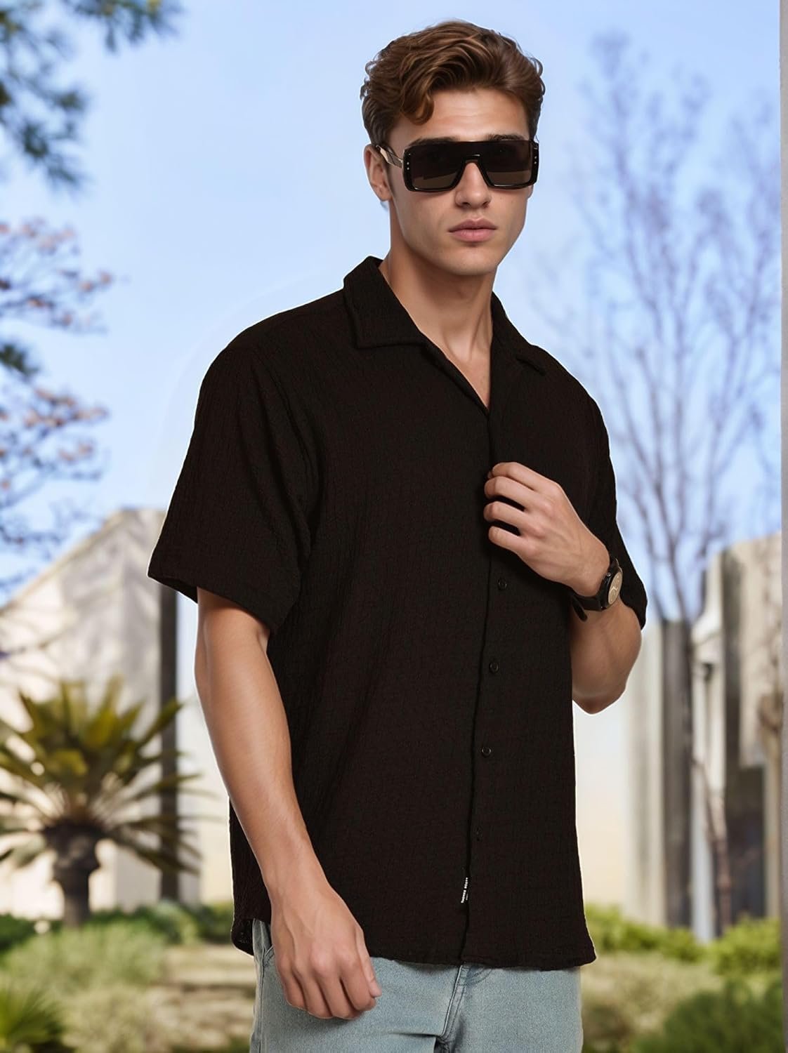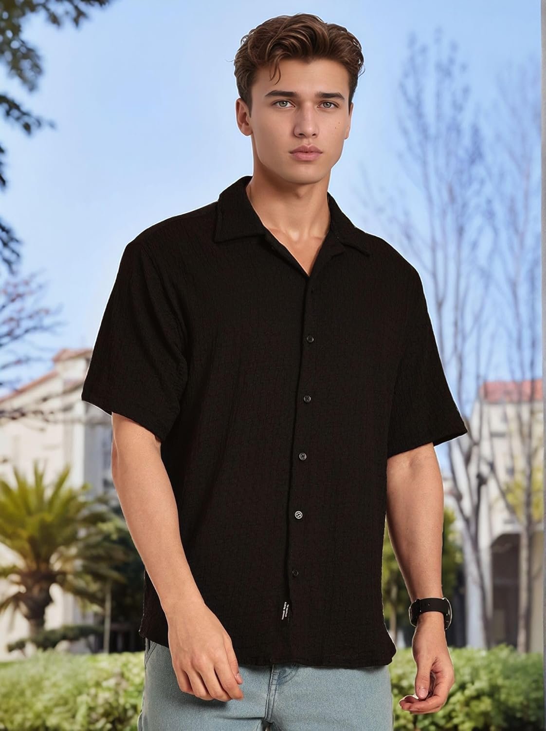 Elevate your summer wardrobe with the Thomas Scott Men’s Regular Fit Cuban Collar Shirt. Made from lightweight seersucker fabric, this shirt combines laid-back comfort with timeless style. The short sleeves and breezy design make it the ideal choice for warm-weather outings, while the Cuban collar adds a touch of retro flair.
