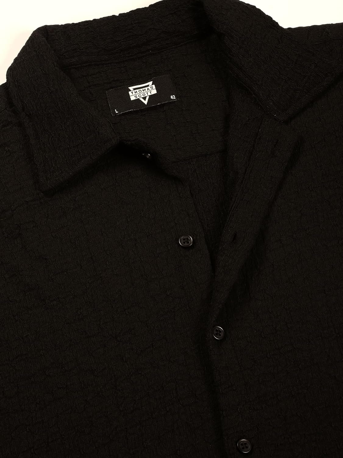 Thomas Scott Men’s | Regular Fit | Short Sleeves | Cuban Collar | Seersucker Fabric | Casual | Shirt
