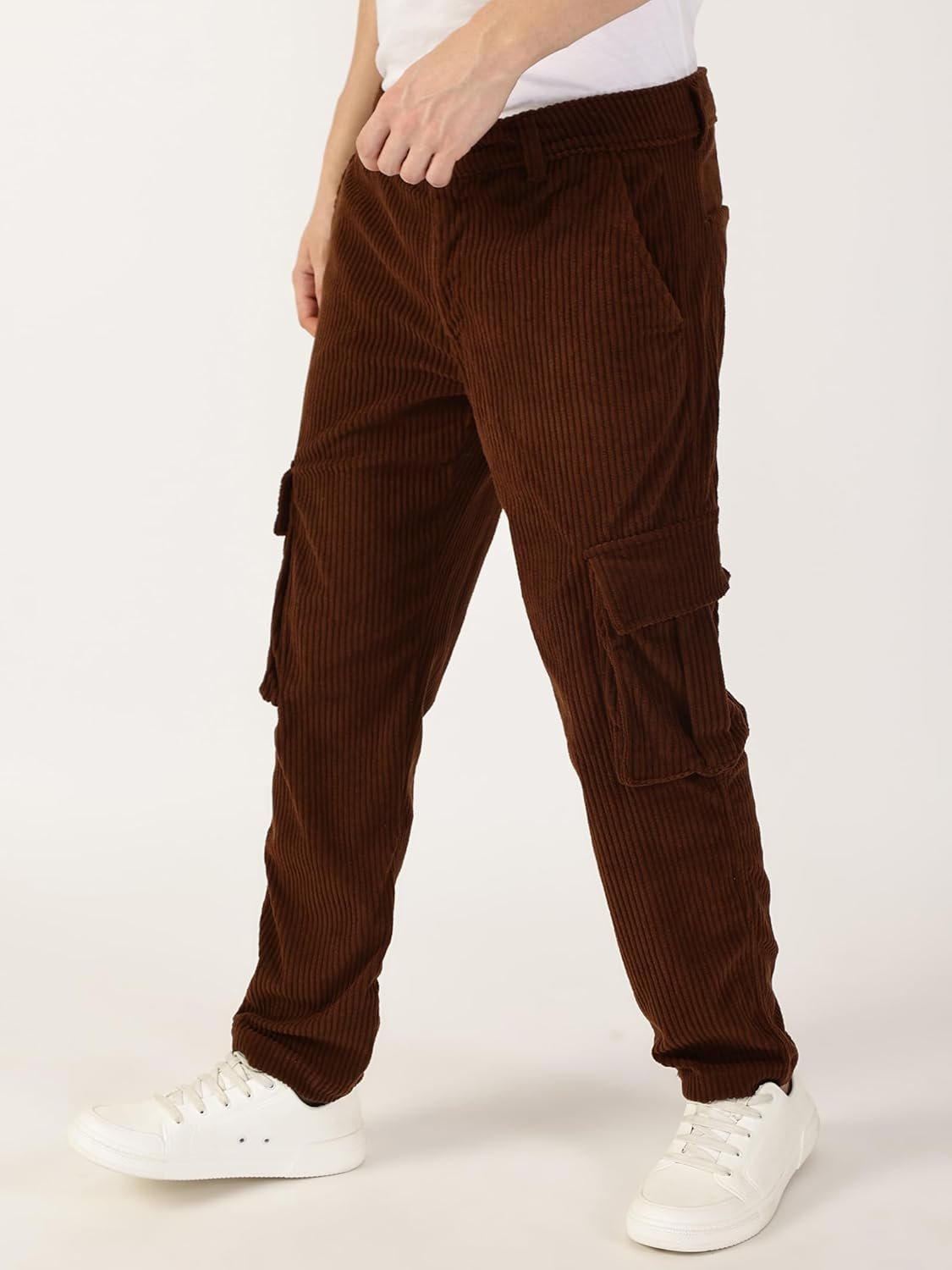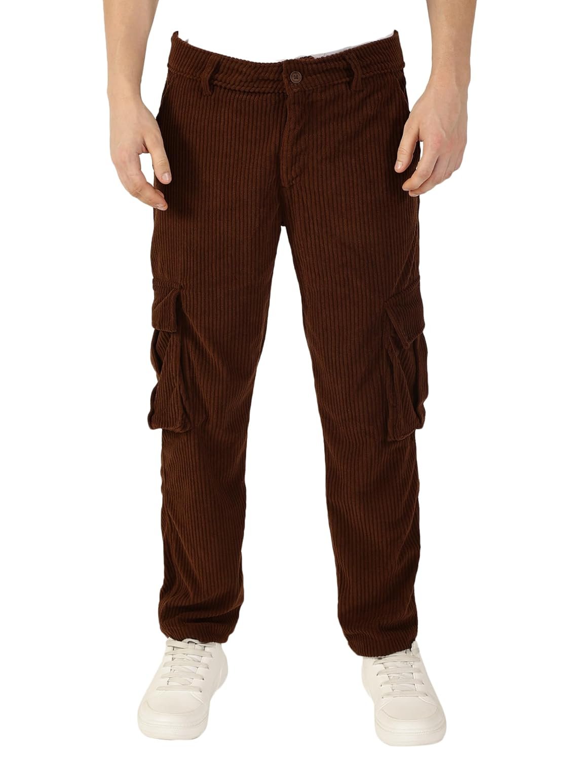 Thomas Scott Men’s | Solid | Light Weight | 6 Pockets | Mid Rise | Regular Fit | Cotton Polyester Blend | Button Waist | Cargo | Trouser | Pants