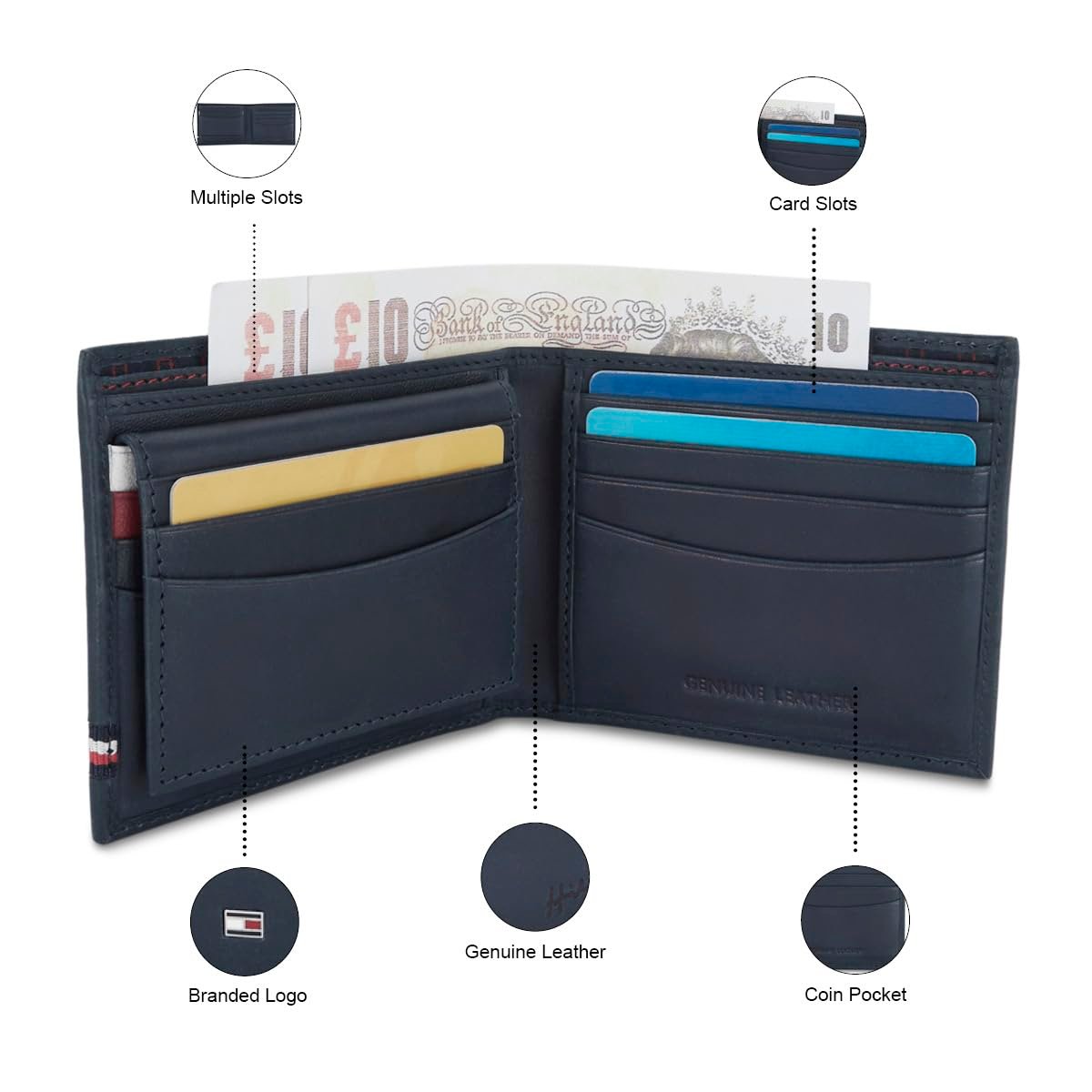 Tommy Hilfiger genuine leather small goods are manufactured with detail to perfection & high quality materials are used.
