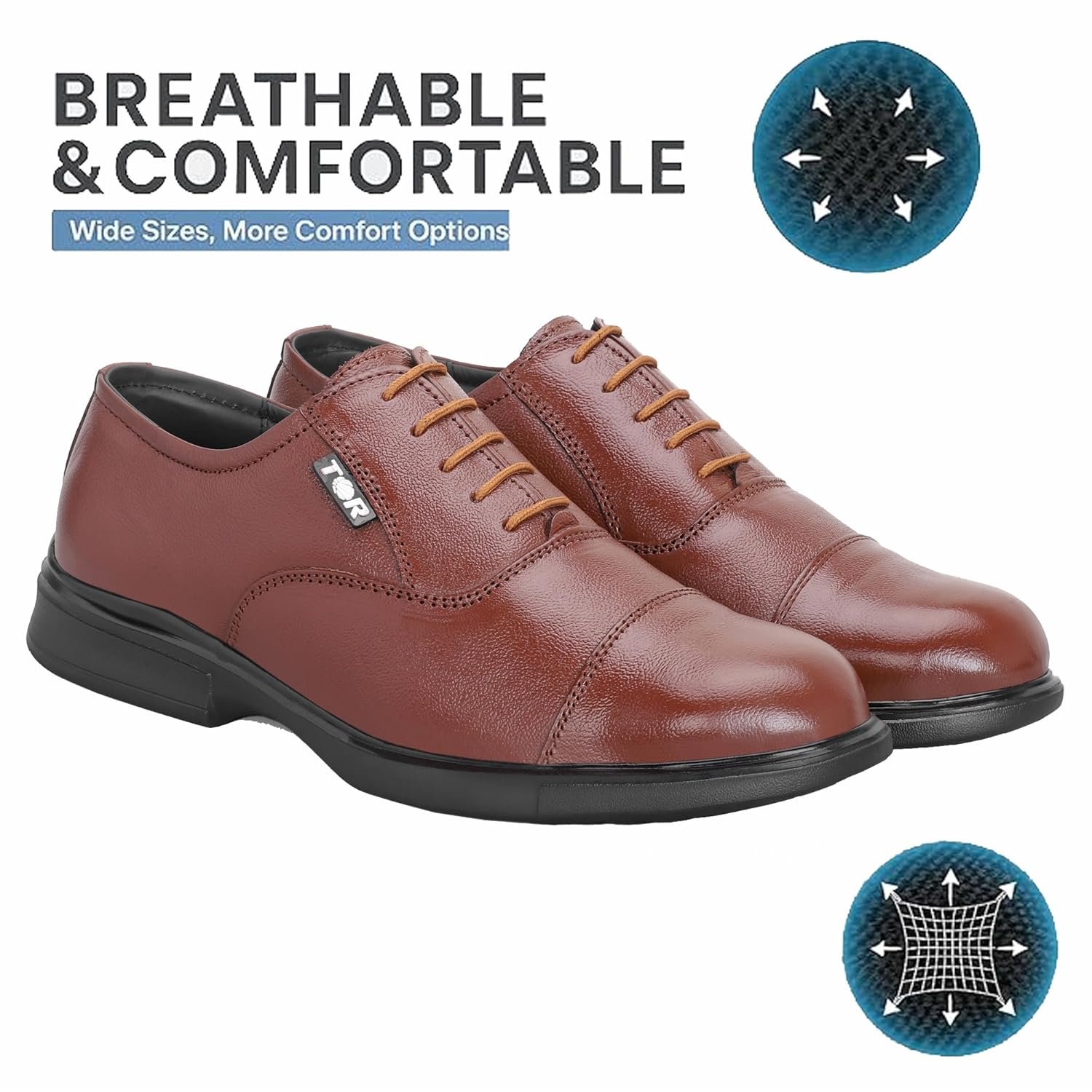 TOR® Men’s Industrial Safety Shoes, Steel Toe Cap, Genuine Leather, Lightweight, Comfortable Safety Shoes in TPR Sole