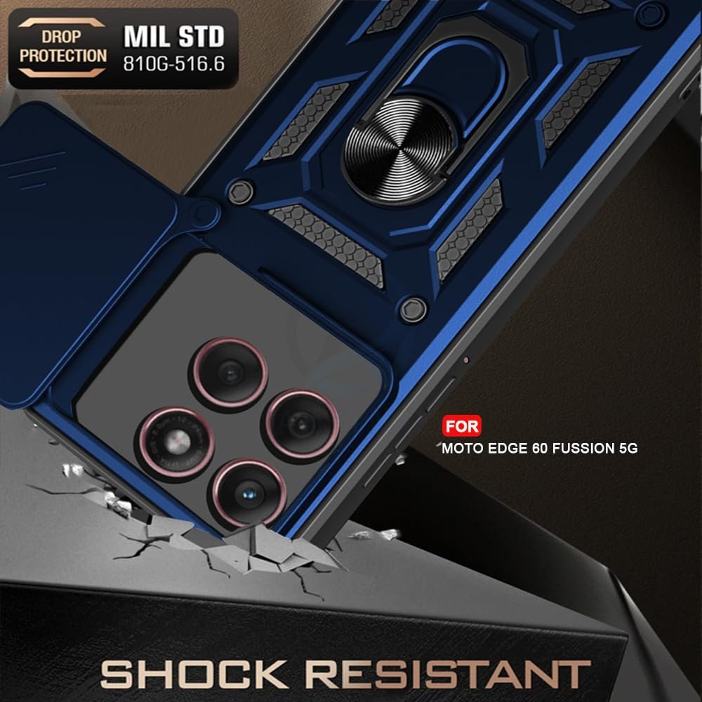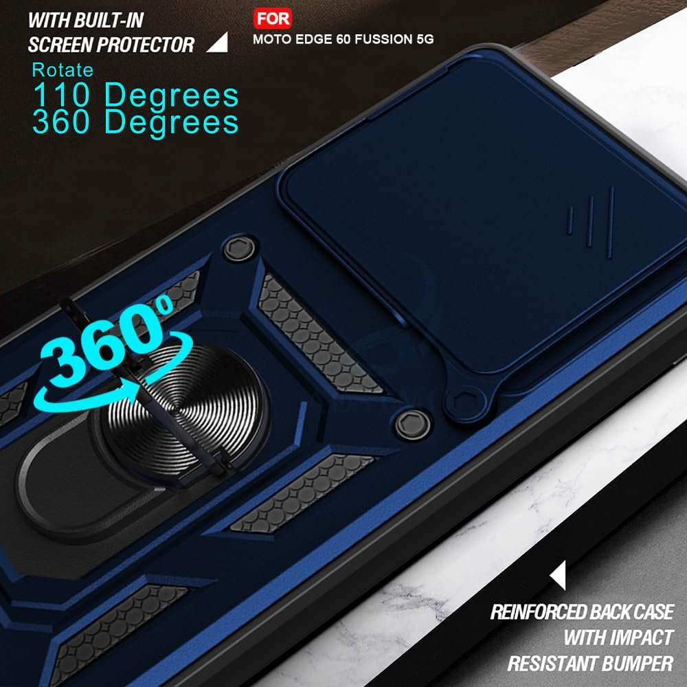 Tough Armor Moto Edge 60 Fusion 5G Bumper Back Case Cover | Ring Holder & Sliding Camera Shield Cover | 360 Degree Protection Back Case Cover for Moto Edge 60 Fusion 5G (Blue)