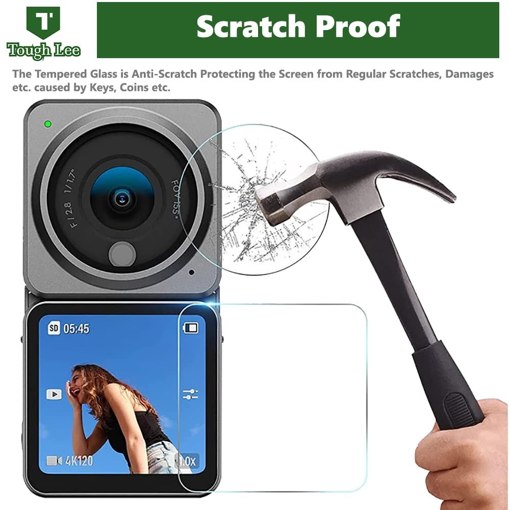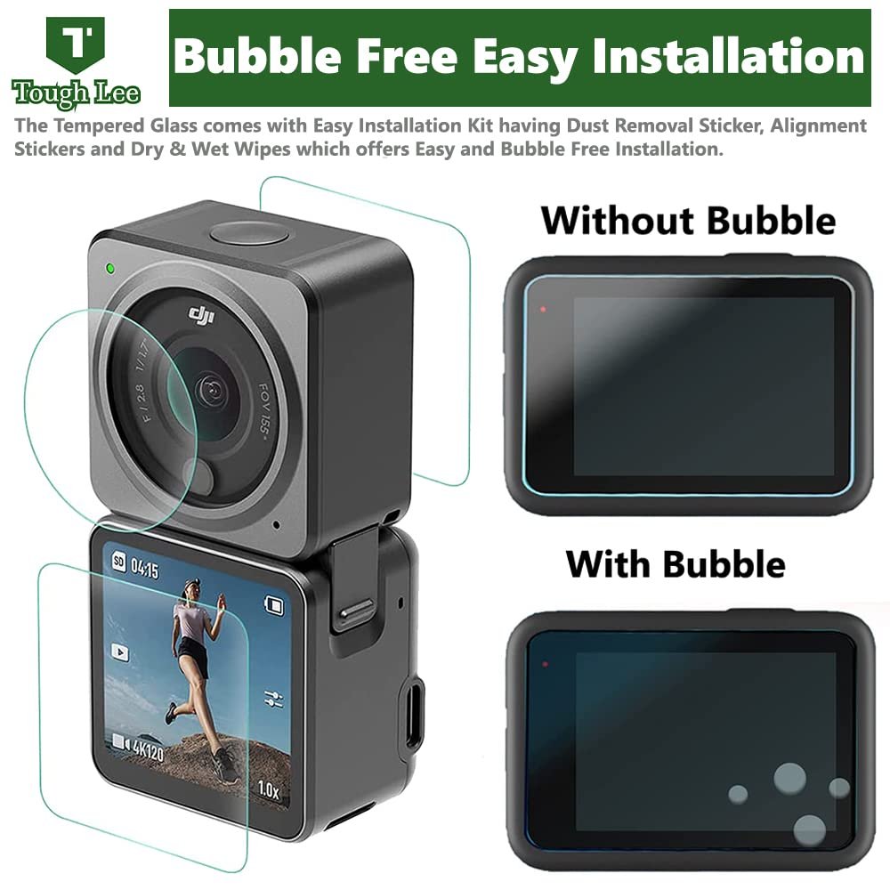 Tough Lee 3 IN 1 Tempered Glass Screen Guard Protector Compatible for DJI Osmo Action 2 Digital Camera with Full Screen Coverage & Easy Installation Kit; (1 Set)
