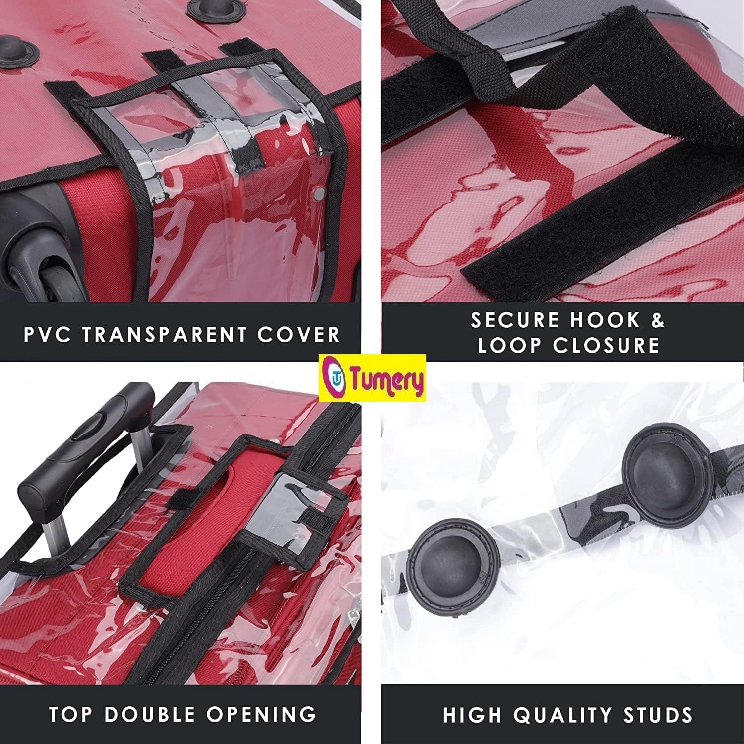 Tumery Transparent PVC Waterproof Luggage Cover Trolley Bag Cover Safeguard your Expensive Trolley High Quality Zipper & Slider, Bottom Velcro doesn’t allows the cover to come out, Body Fit Cover for better look