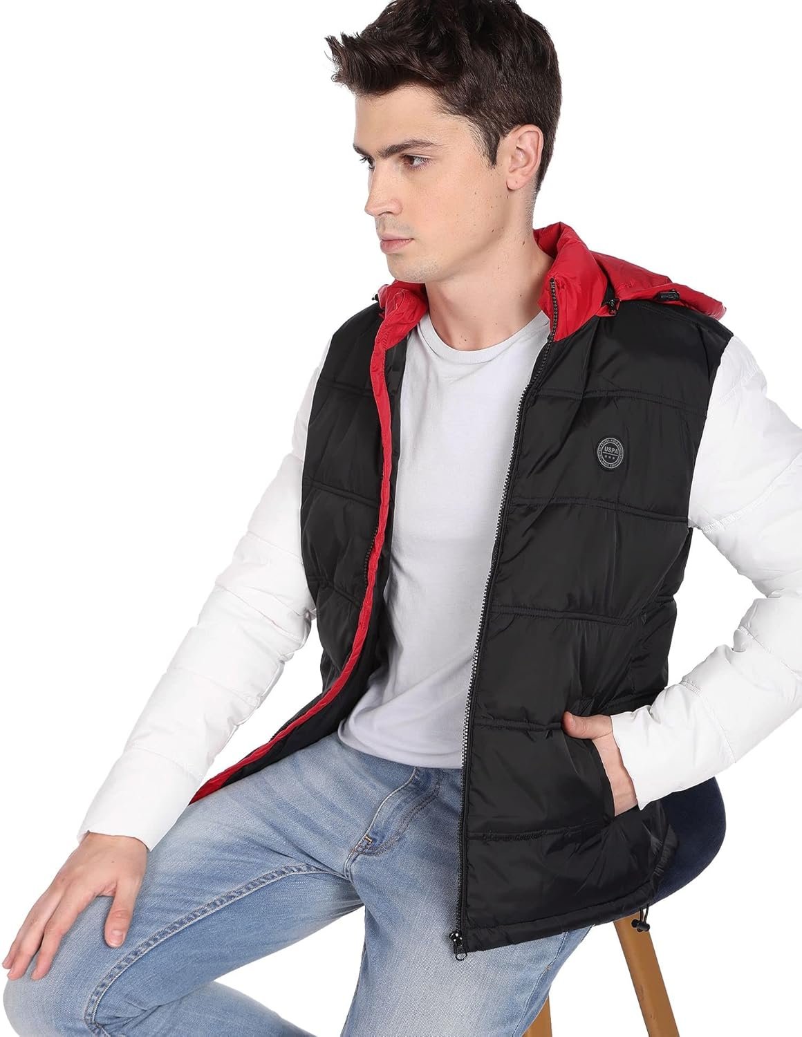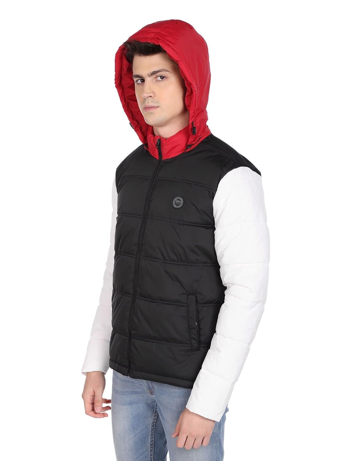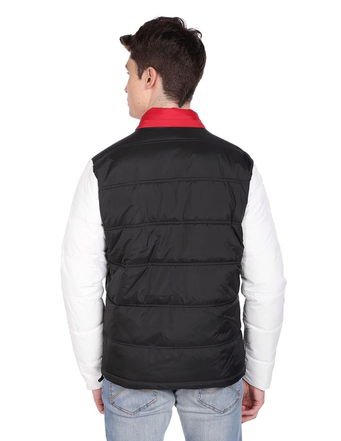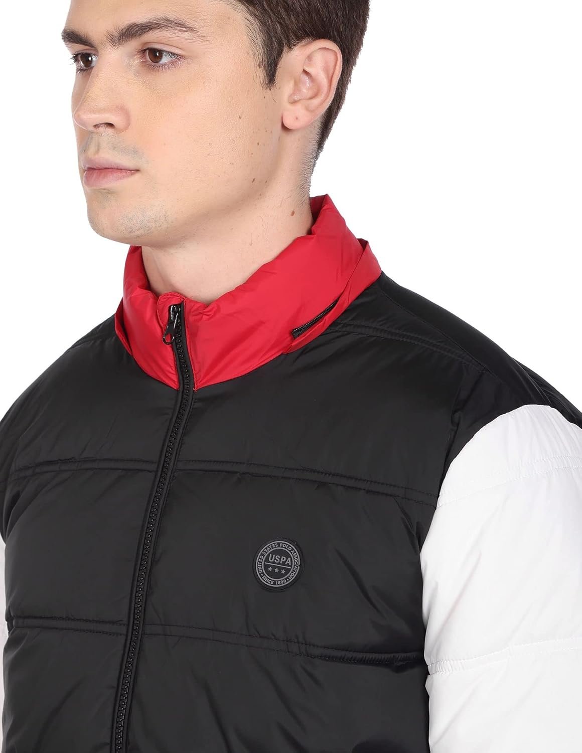 U.S. POLO ASSN. Men Black and White High Neck Colour Block Puffer Jacket