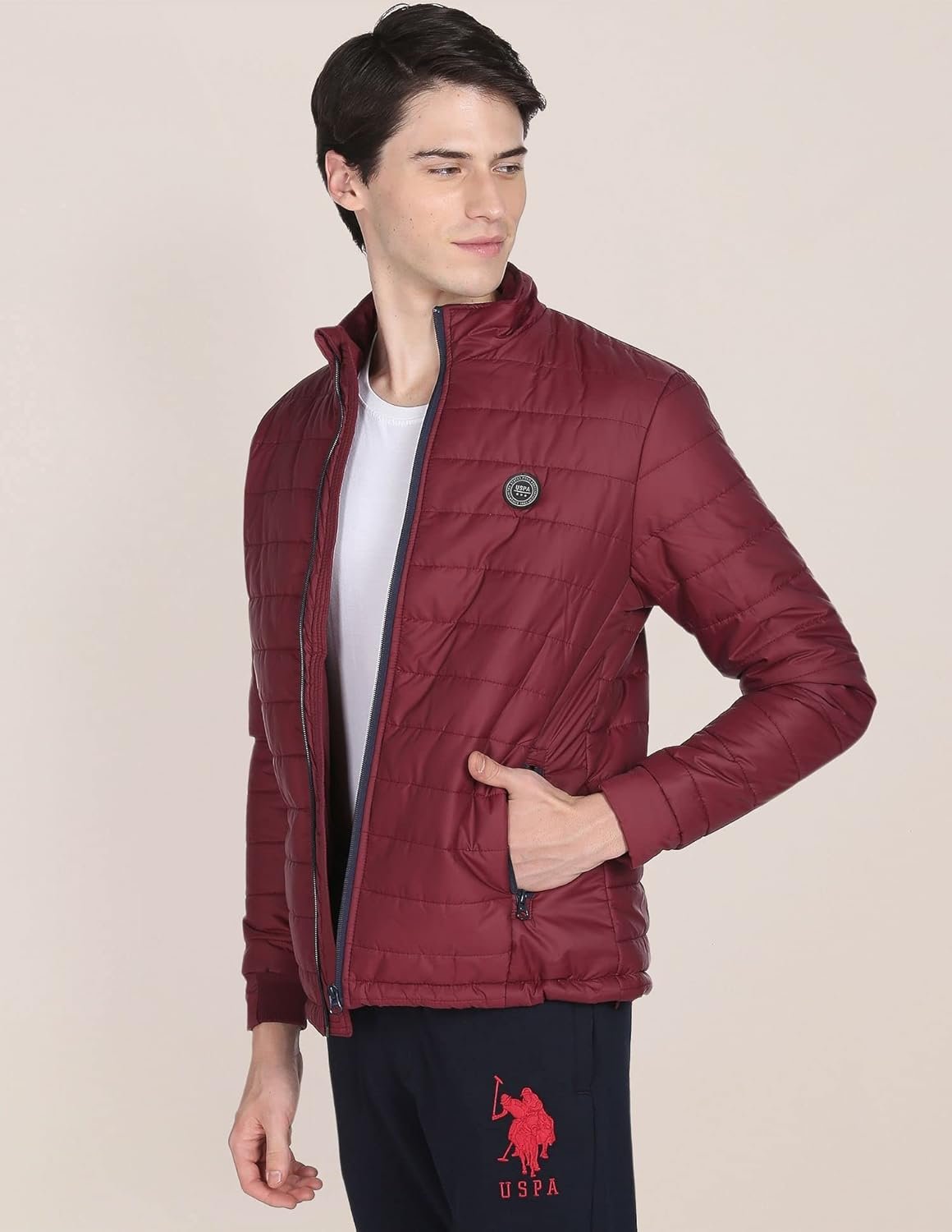 U.S. POLO ASSN. Men High Neck Solid Polyester Padded Standard Length Jacket