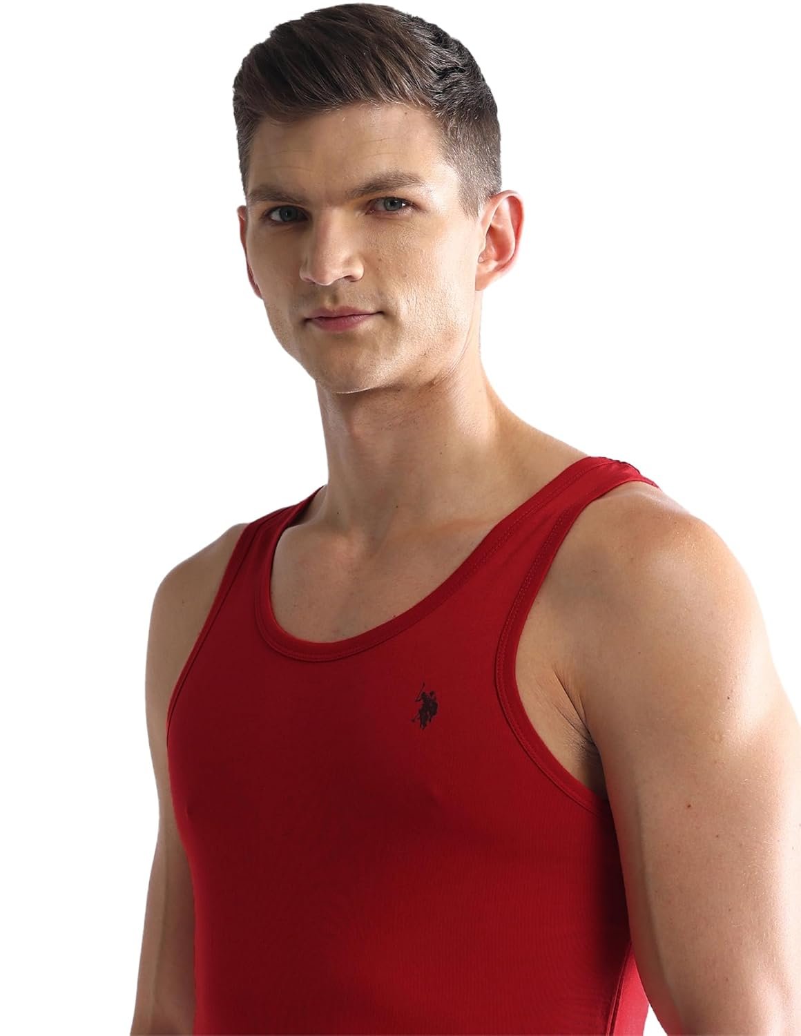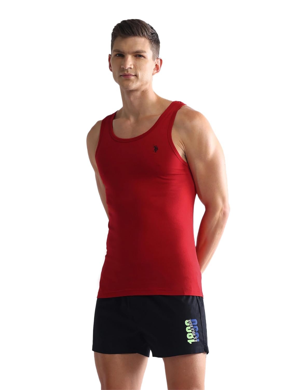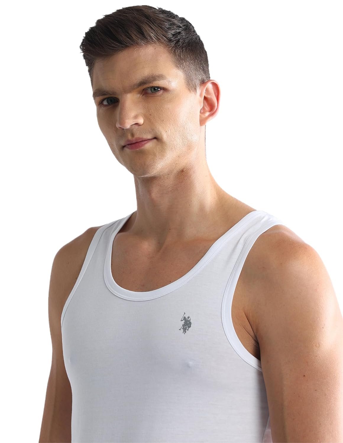 A vest is a versatile component in a man’s innerwear routine, and this solid piece exudes that flair with the brand logo at the front and rib trim at the neck and armhole for better grip.