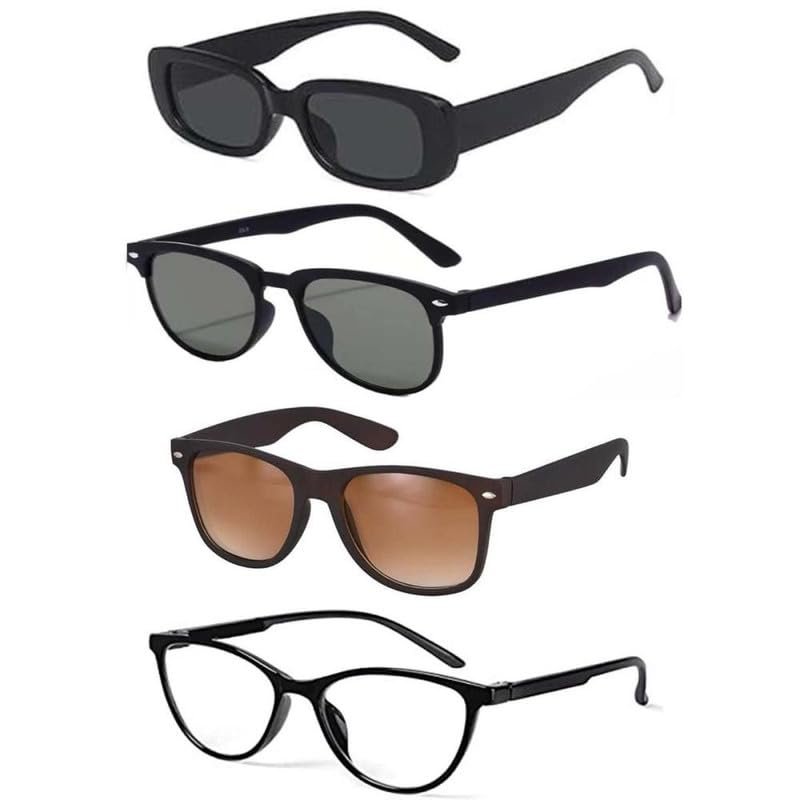 Unisex Retro, Round, Rectangle, Cateye Sunglasses For Women And Men | Stylish Classic Shades Black, Brown, Clear | Latest Branded Combo Offer Pack UV400 Protection Fashion Glasses With Box #1150
