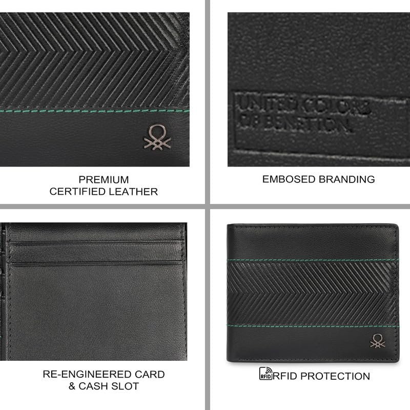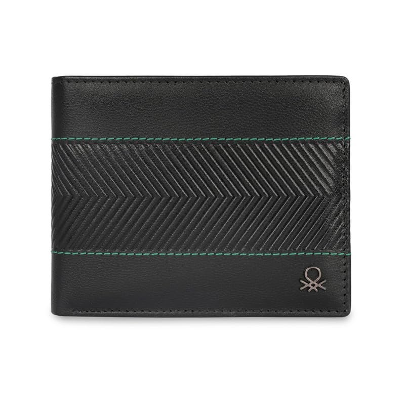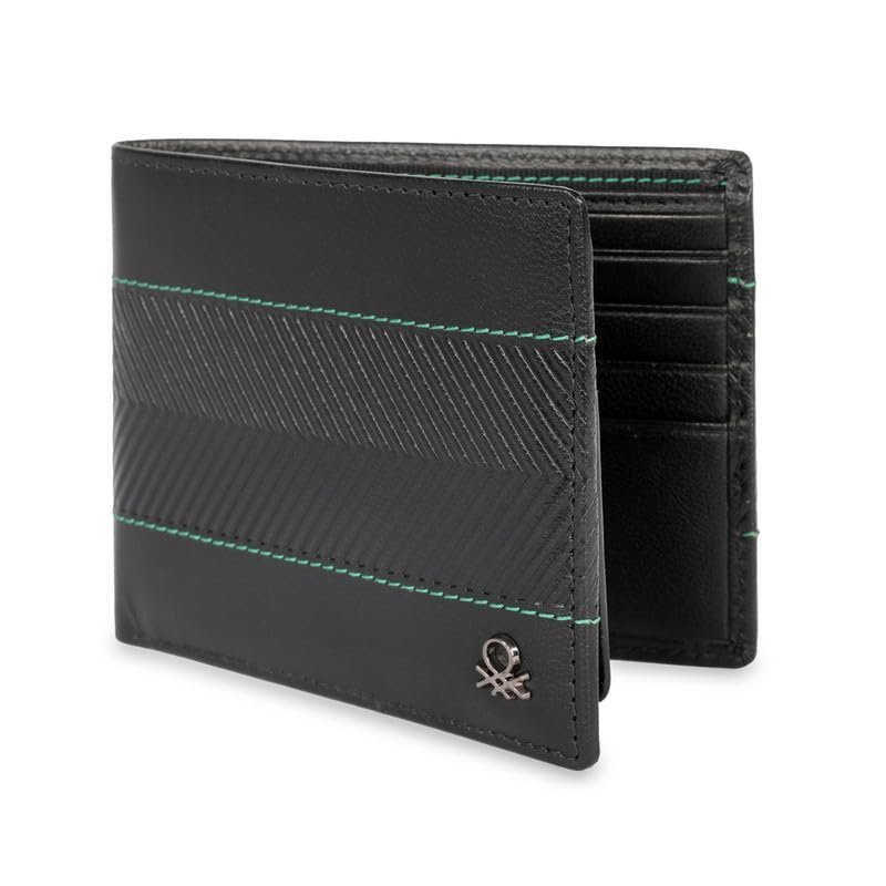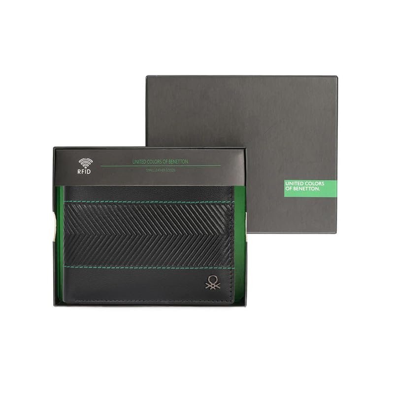 United Colors of Benetton Men RFID Protected Locarno Passcase Wallet – Black, No. of Card Slot: 12 | Embossed Passcase Wallet with Side Closure | Leather