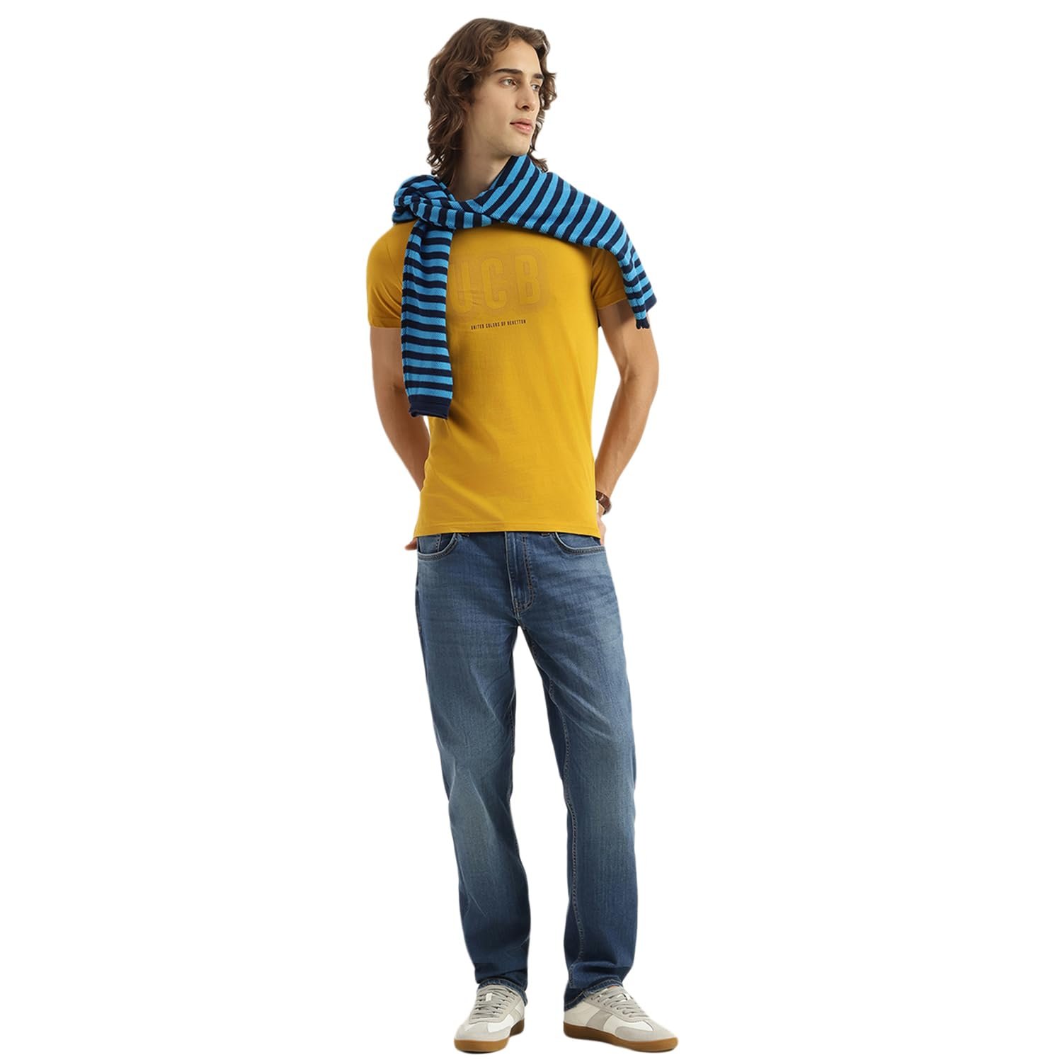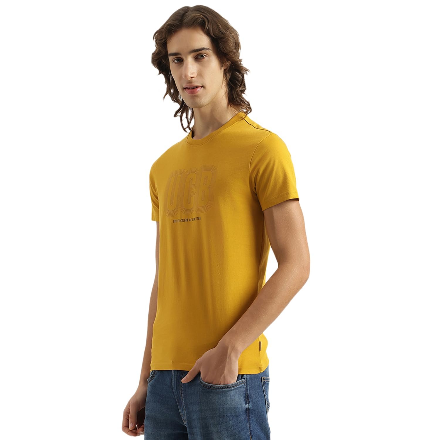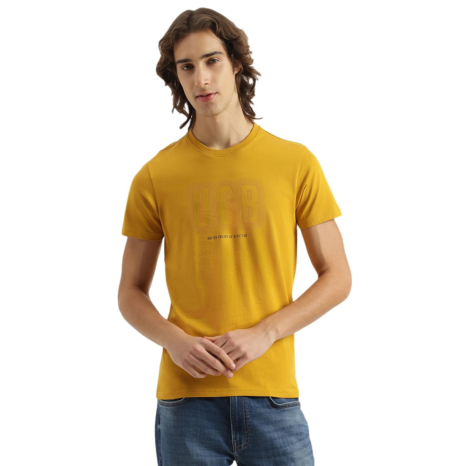 Discover comfort and style with our mustard jersey t-shirt for men. Featuring a regular fit and printed pattern, this short sleeve crew neck tee is crafted from pure cotton fabric. The pull-on closure ensures easy wear, making it a versatile addition to your wardrobe for any casual occasion.