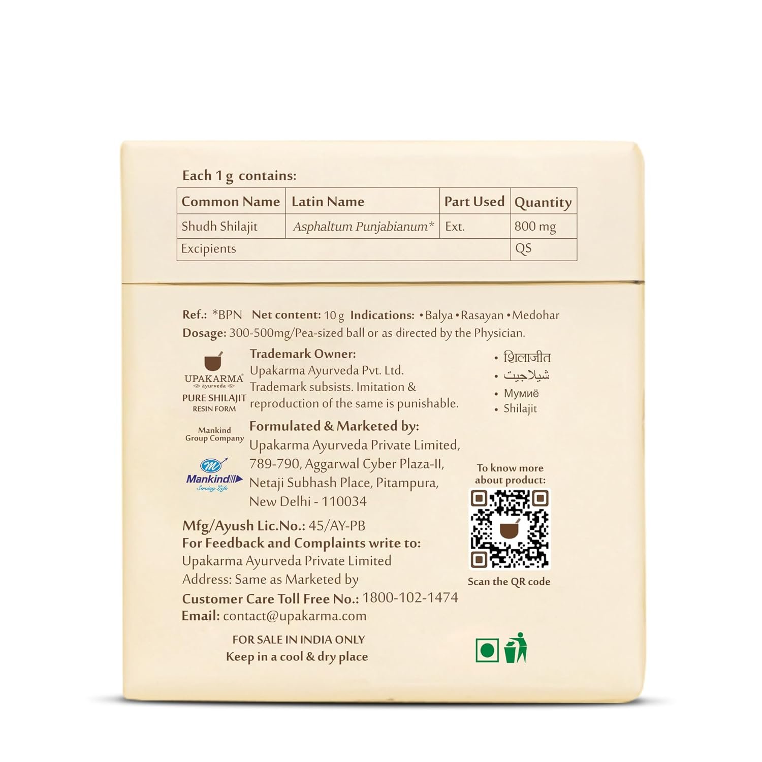 Manufacturer : Upakarma Ayurveda Pvt Ltd., Upakarma Ayurveda Pvt. Ltd., Contact: 1800-102-1474, contact@upakarma.com