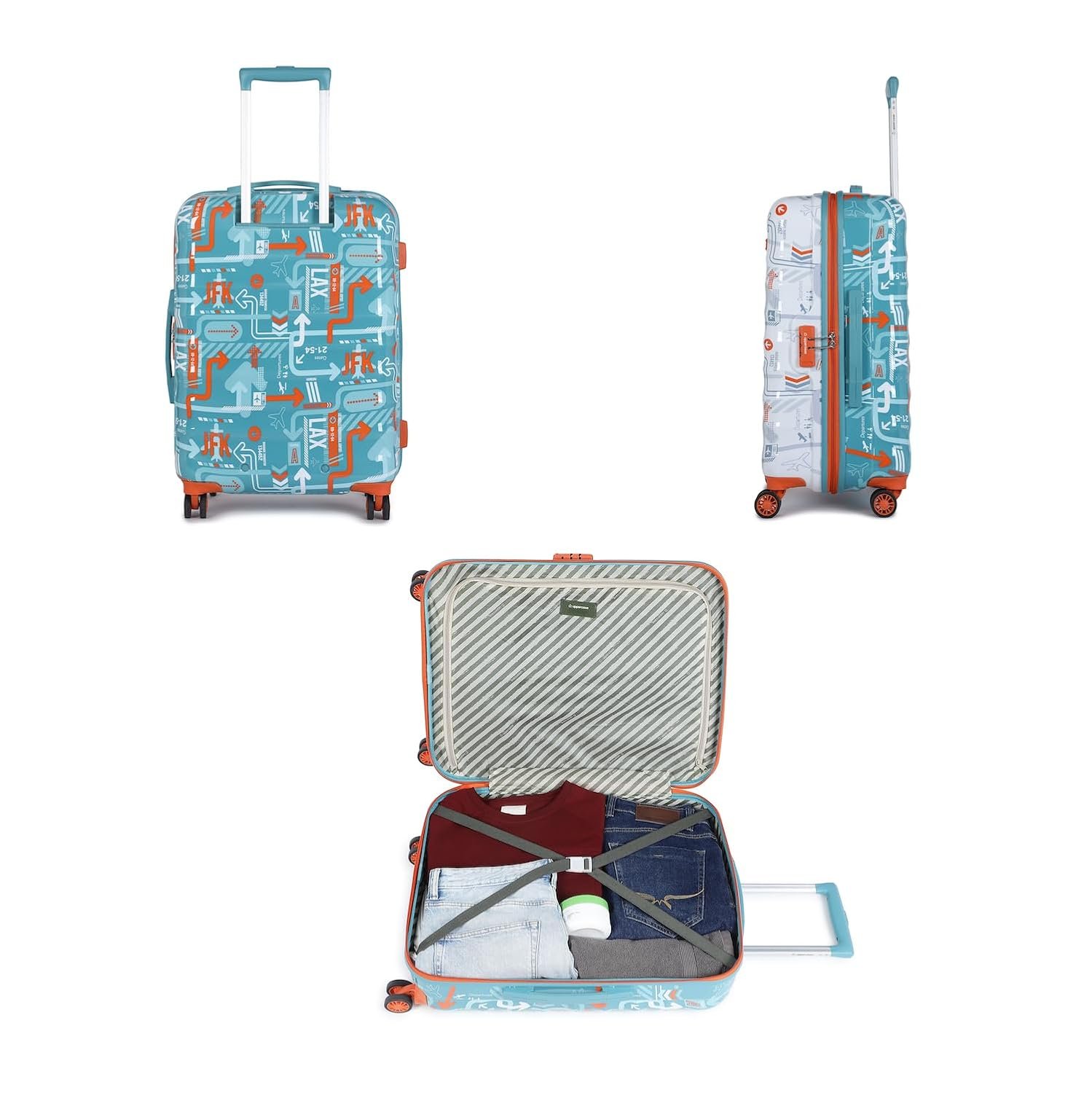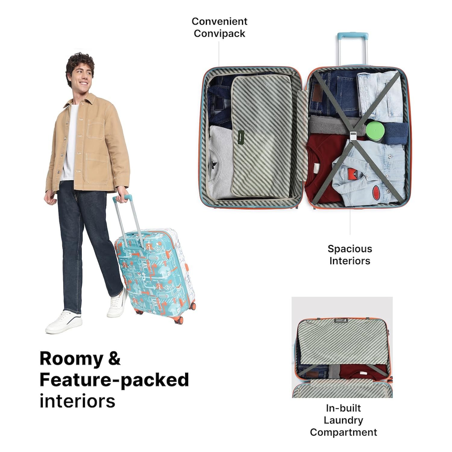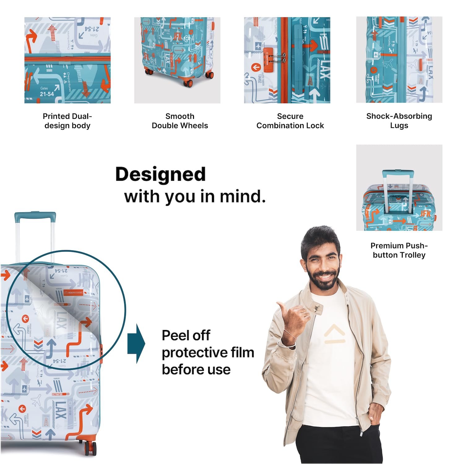 2000 DAYS OF INTERNATIONAL WARRANTY- India’s pioneering uppercase JFK Duo Sustainable Hardsided Printed Luggage, the ultimate blend of durability and eco-conscious design, featuring 2000-days International Warranty. These polycarbonate trolley bags set the benchmark as the first of its kind in India (License CMPY-158596-RCS), ensuring both sustainability and long-lasting quality for your travels. An ideal suitcase for travel. Dimensions- (46cms x 28.5cms x 65.5cms).