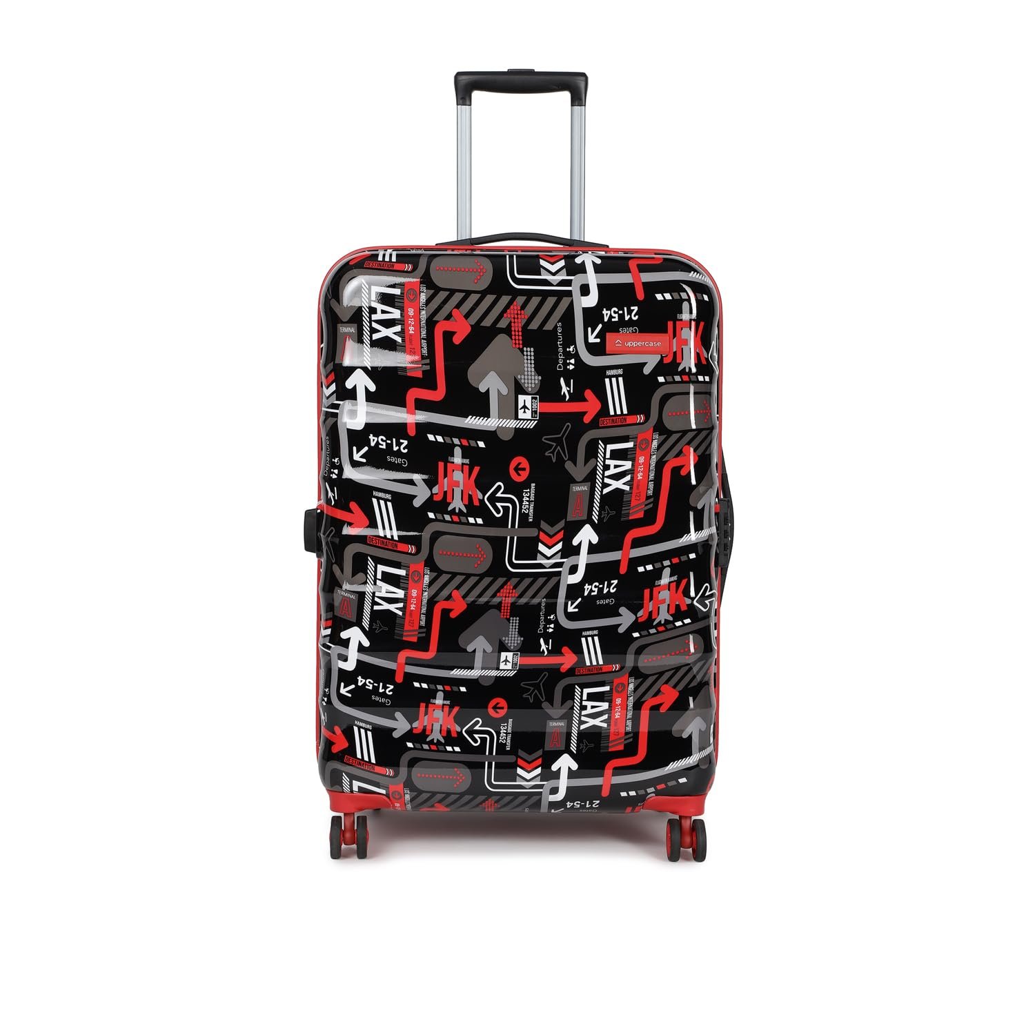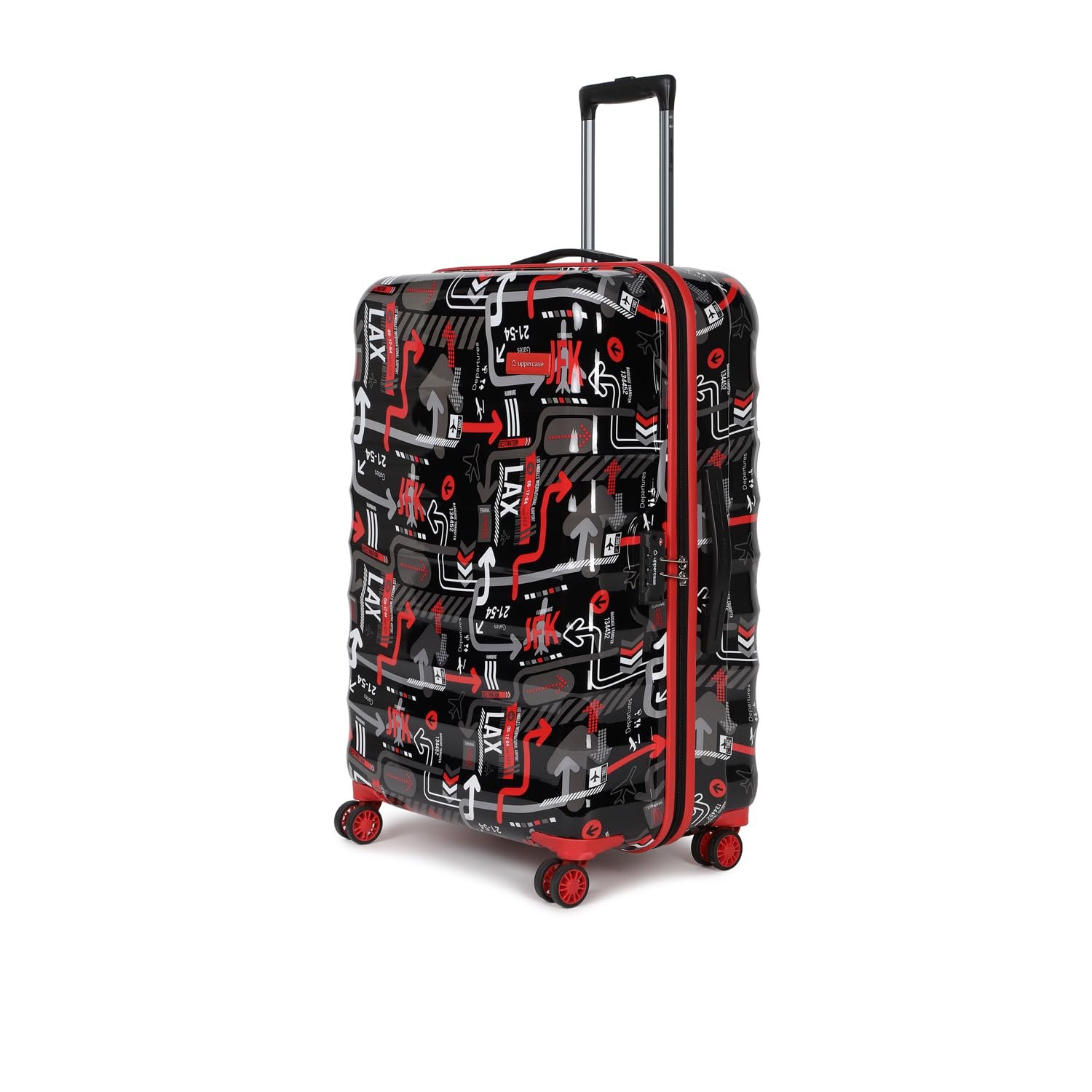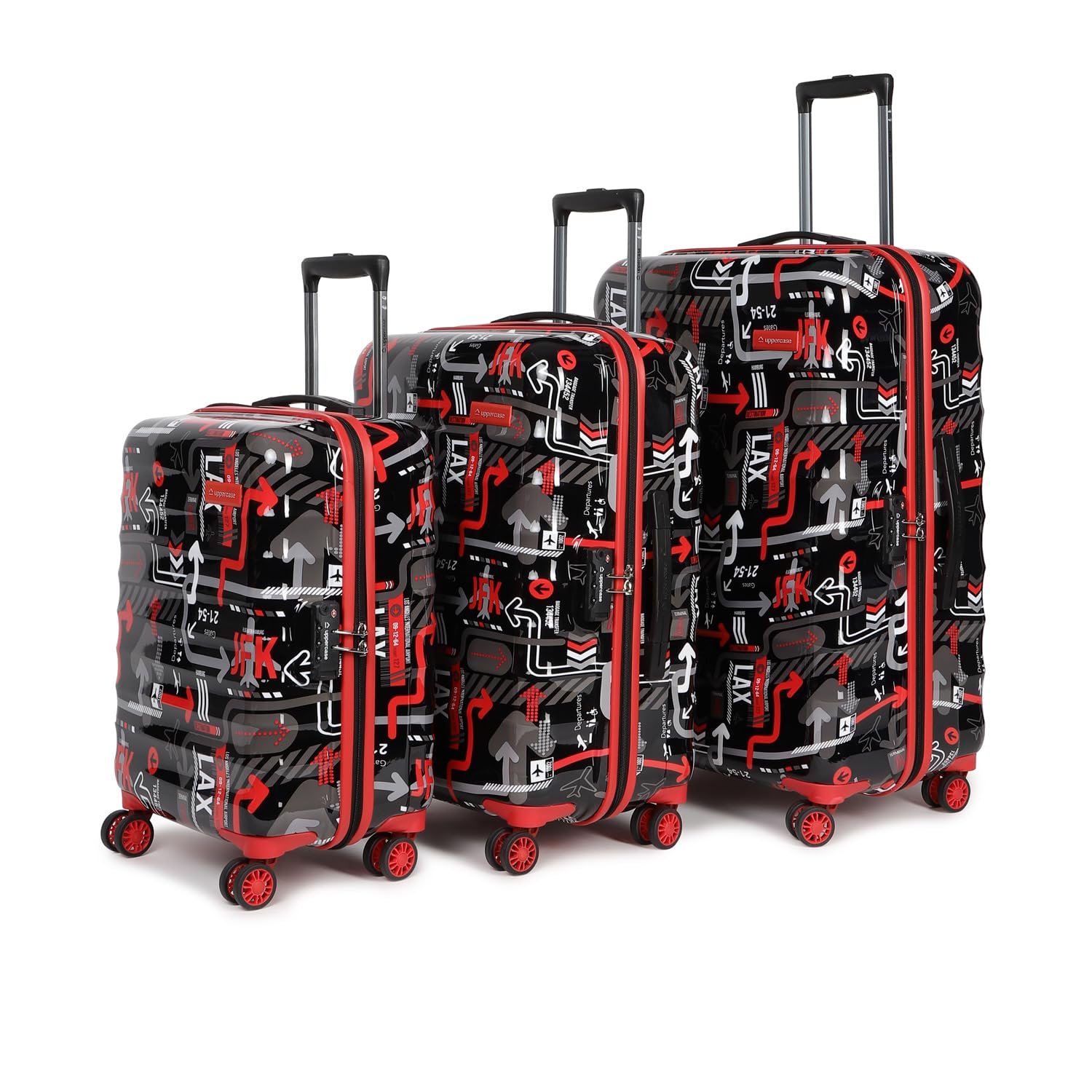 uppercase JFK Plus Trolley Bag Set of 3 (S+M+L) Cabin & Check-in Trolley Bag | Hardsided Printed Luggage | TSA Lock | 8 Wheel Suitcase for Men & Women | 2000 Days Warranty (Black)