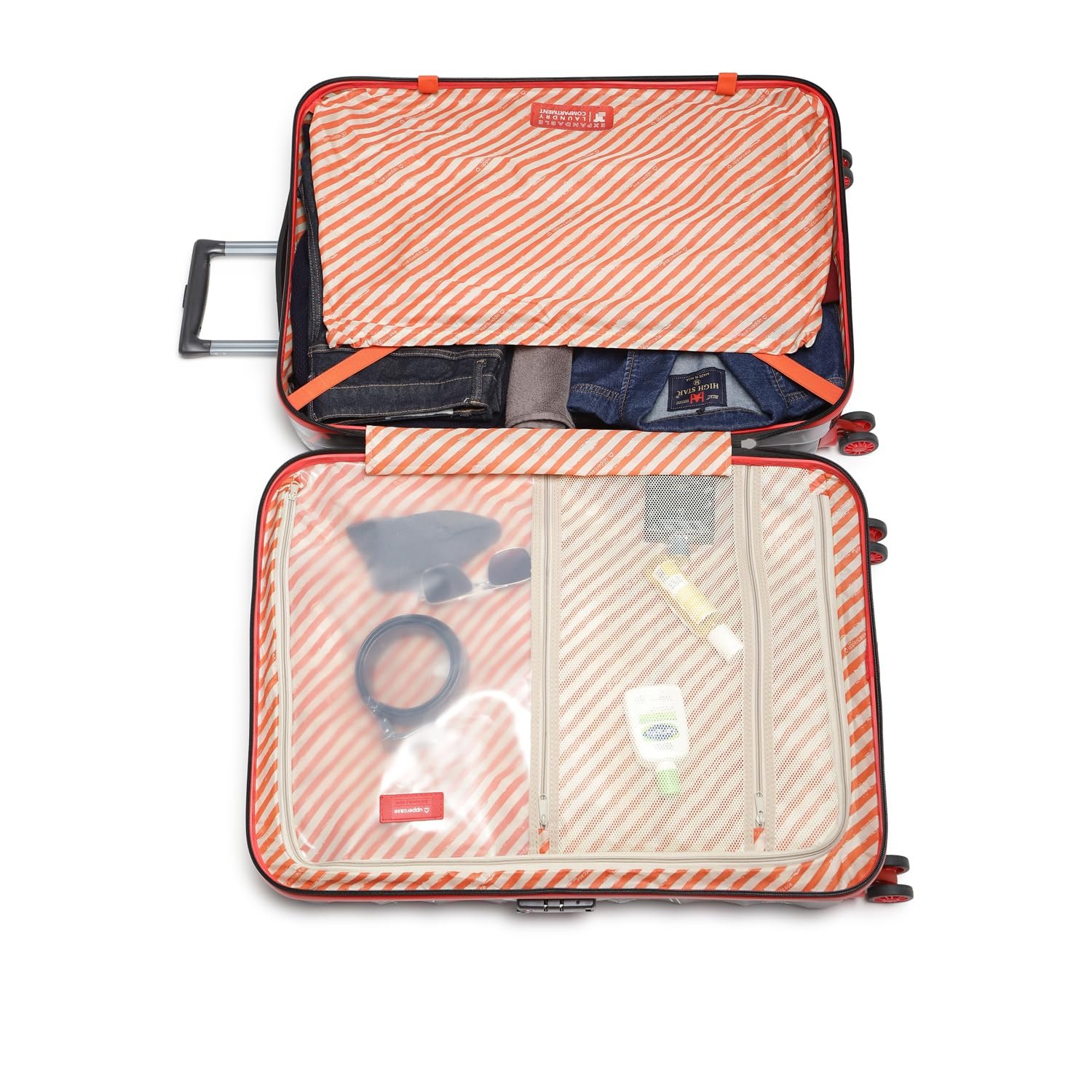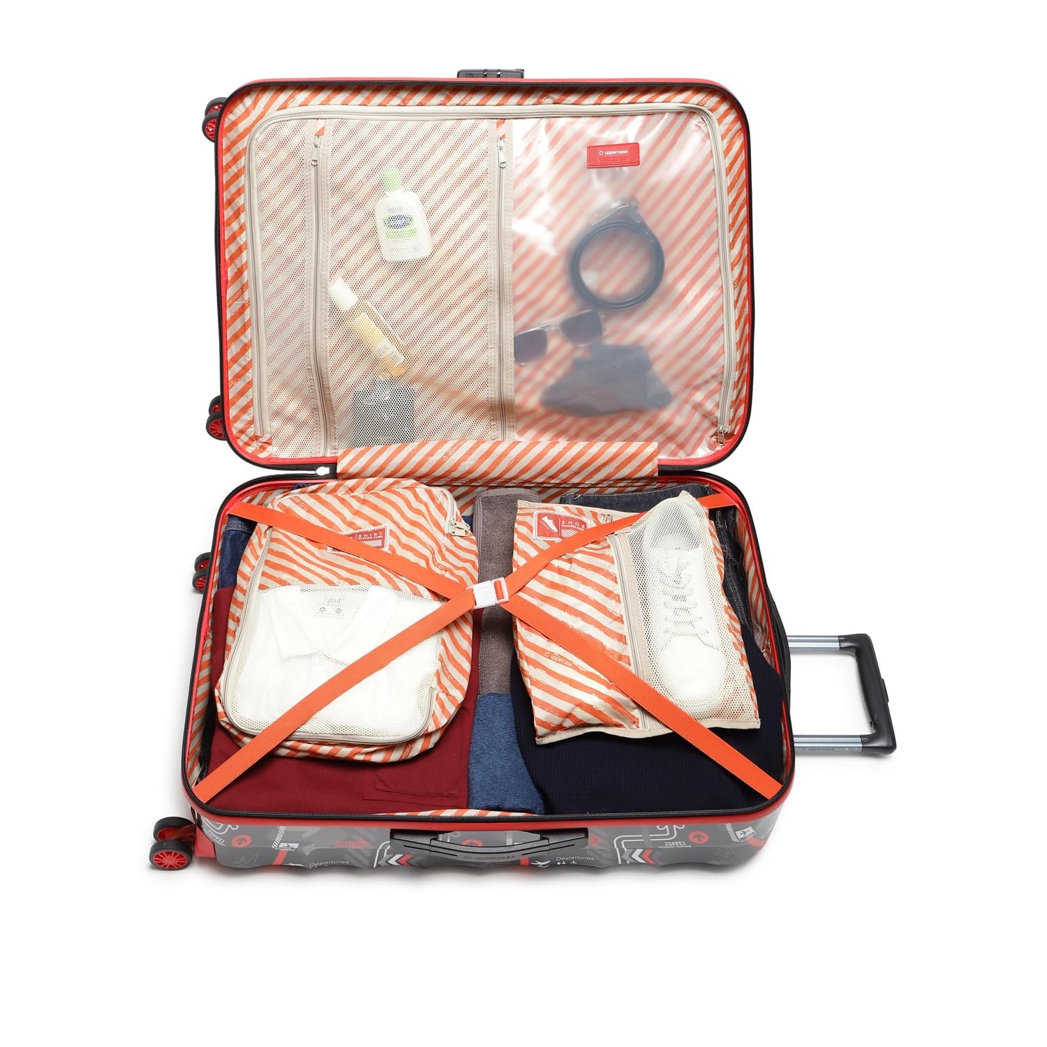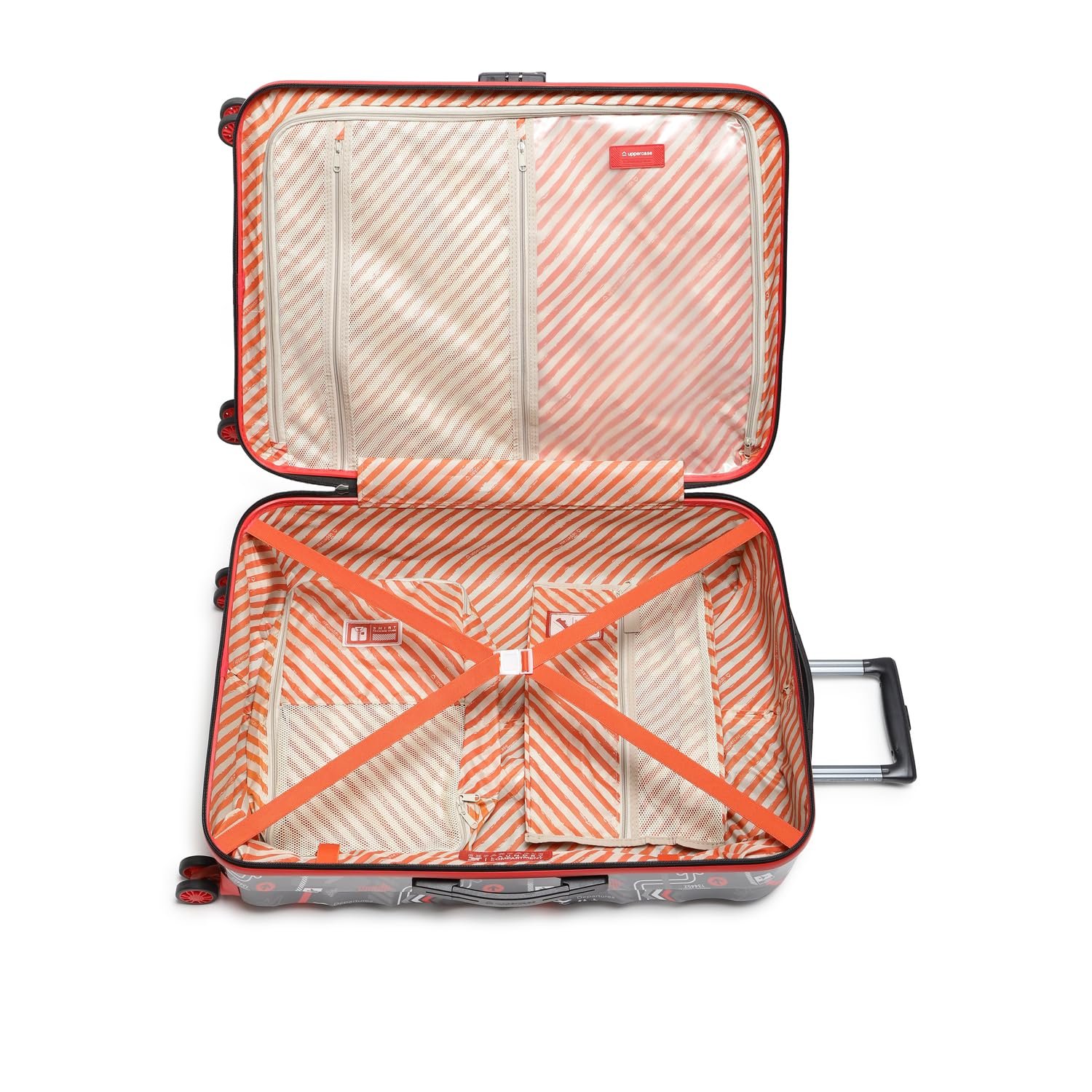 CUSHIONED SIDE & TOP HANDLES- Experience ultimate comfort during travel with the uppercase Trolley Luggage featuring cushioned integrated top and side handles. A perfect blend of convenience and comfort, ensuring a relaxed and enjoyable journey every time you travel.