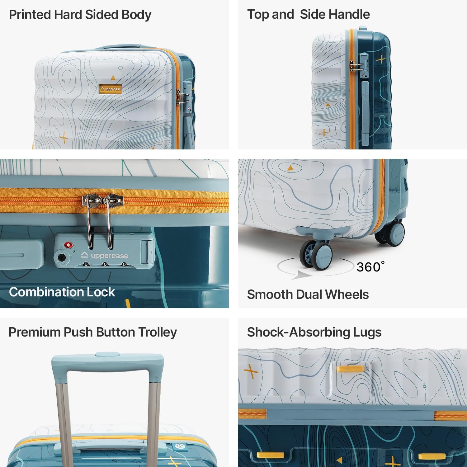 uppercase Topo Dual Tone Trolley Bag— an ideal trolley bag for travel- a trailblazing travel companion that embodies durability, sustainability, and smart design. These certified polycarbonate trolley bags set new benchmarks with an unprecedented 2000-day International Warranty by uppercase, ensuring both quality and eco-consciousness. Featuring shock-absorbing lugs, TSA lock security, and Anti-Theft Zippers. It is thoughtfully designed to accommodate your needs, ensuring seamless travel regardless of your load. Beyond its stylish exterior lies a thoughtful interior—built-in laundry compartments, ConviPack, and a wet pouch for seamless organization. Embrace worry-free travels with shock-absorbing lugs in each bag, promising superior protection for your belongings from departure to arrival.