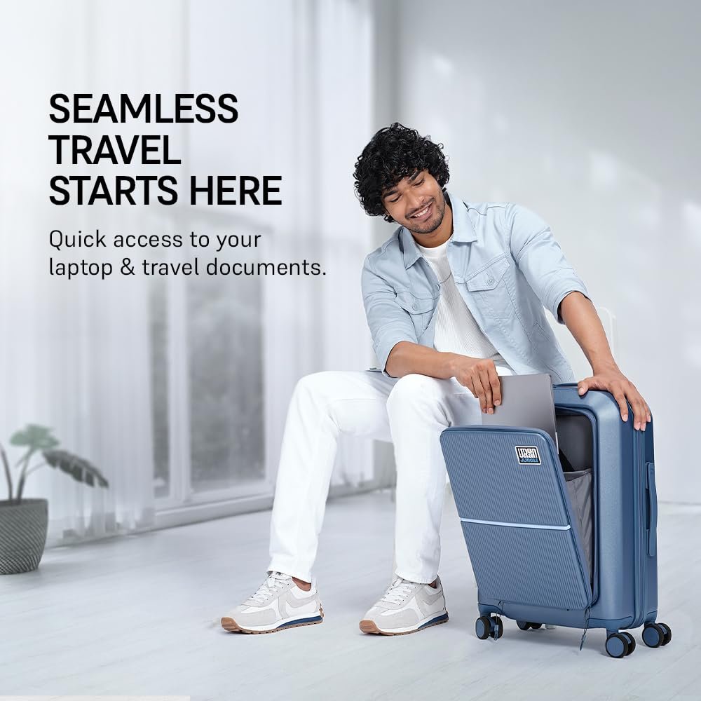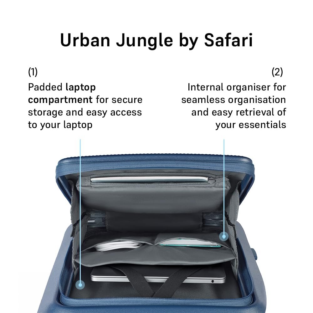 Urban Jungle by Safari, Cabin Trolley Bag with Laptop Compartment, Hardside Polycarbonate Small (55 Cm) Suitcase with USB Charging Socket, 8 Silent Wheel Luggage for Both Men & Women (Skyline Blue)
