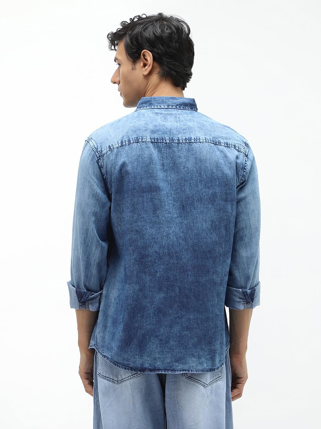 Urbano Fashion Regular Fit Full Sleeves Washed Denim Shirt