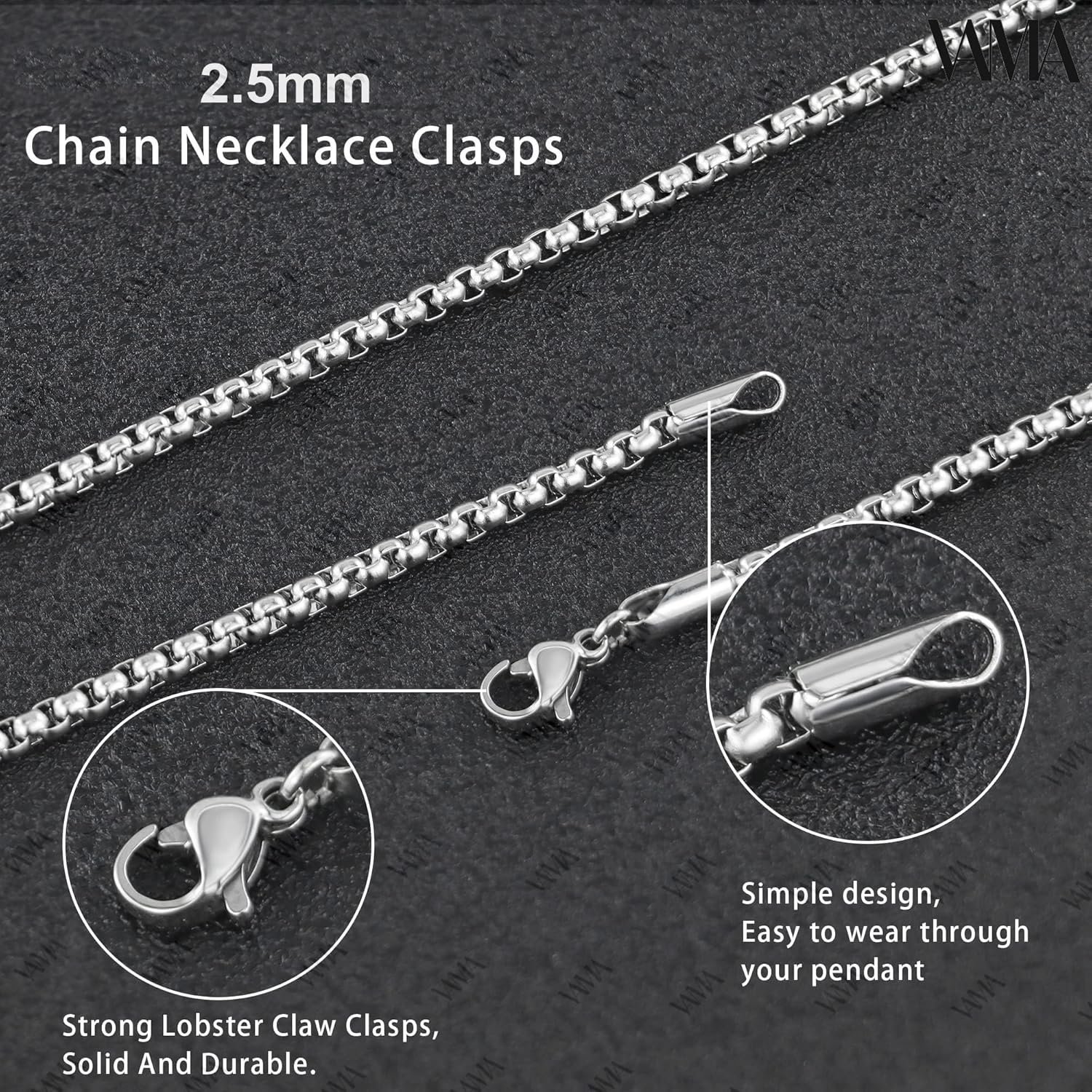 VAMA FASHIONS Classic Simple Water Proof Stainless Steel Anti Tarnish Silver Western Charm Stylish Neck Necklace Box Chains for Boys Mens