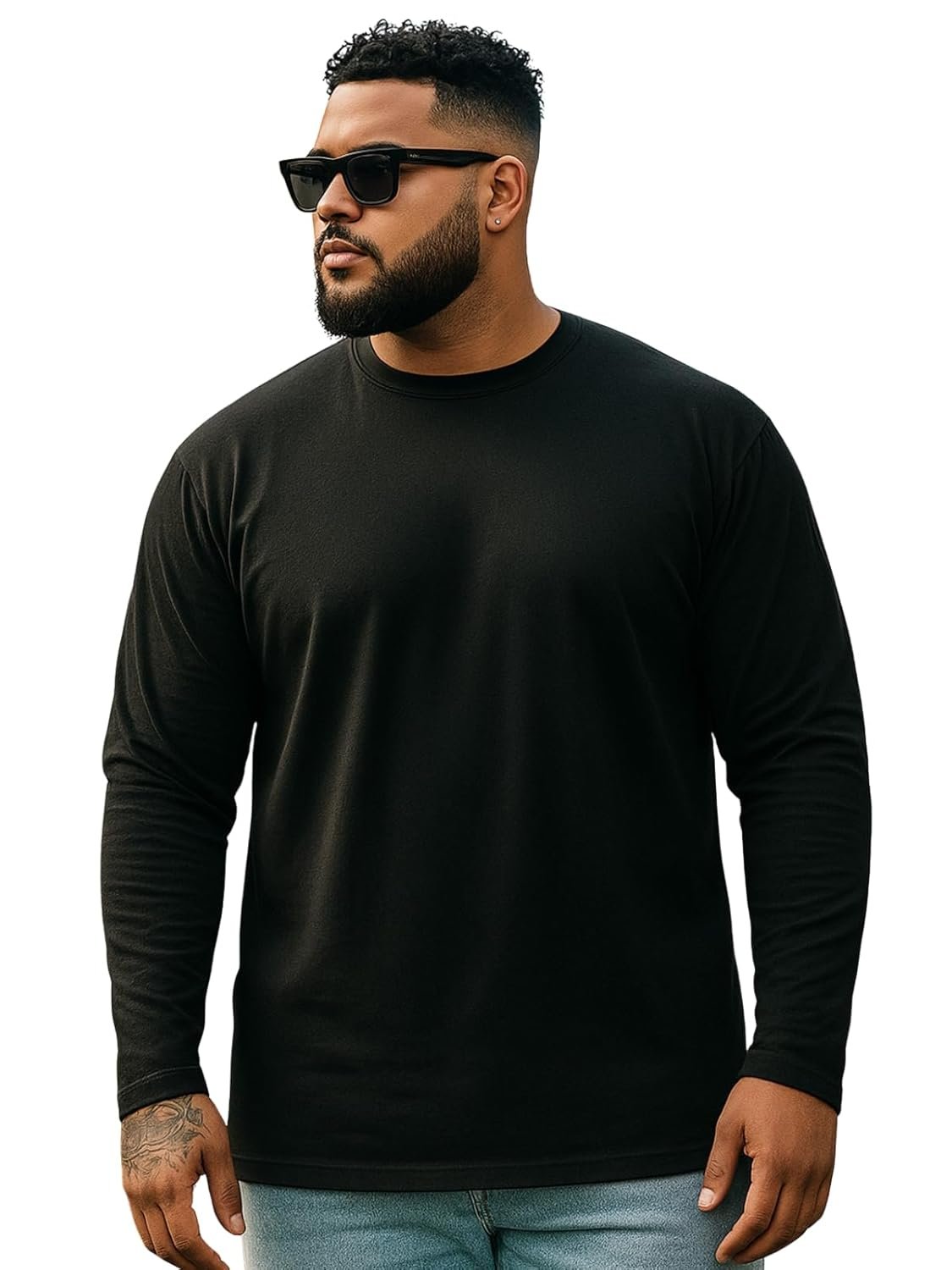 Veirdo® Pure Cotton Regular Fit Solid Core Plus Size Plus Size Full Sleeve T-Shirt for Men (Sizes: 2XL to 5XL)