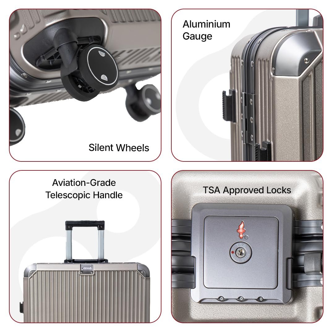 ANTI-THEFT FEATURE This trolley bag for travel has dual TSA locks and a strong aluminium frame, keeping your belongings safe from impact and unauthorised access for worry-free travel.