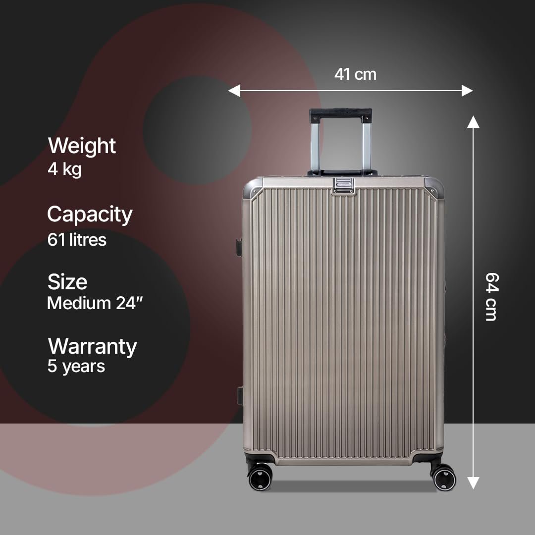 Vertica Hard PC Trolley Luggage, Medium Size, 100% Polycarbonate, Lightweight and Durable, Silent Wheels, Anti-Theft with Aluminium Frame, and 2 TSA Locks, 24-Inch, Granite Haze