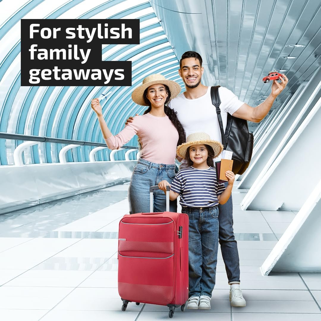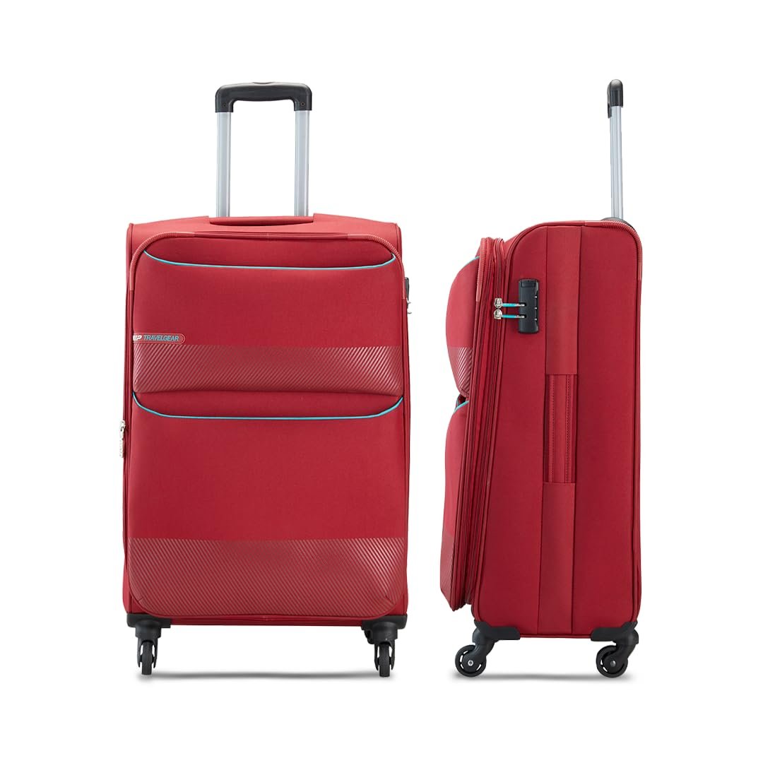 Transport your travel essentials effortlessly and stylishly.VIP Essencia Durable Polyester Softsided Check-in Luggage Smooth Spinning Wheels 69cm Red