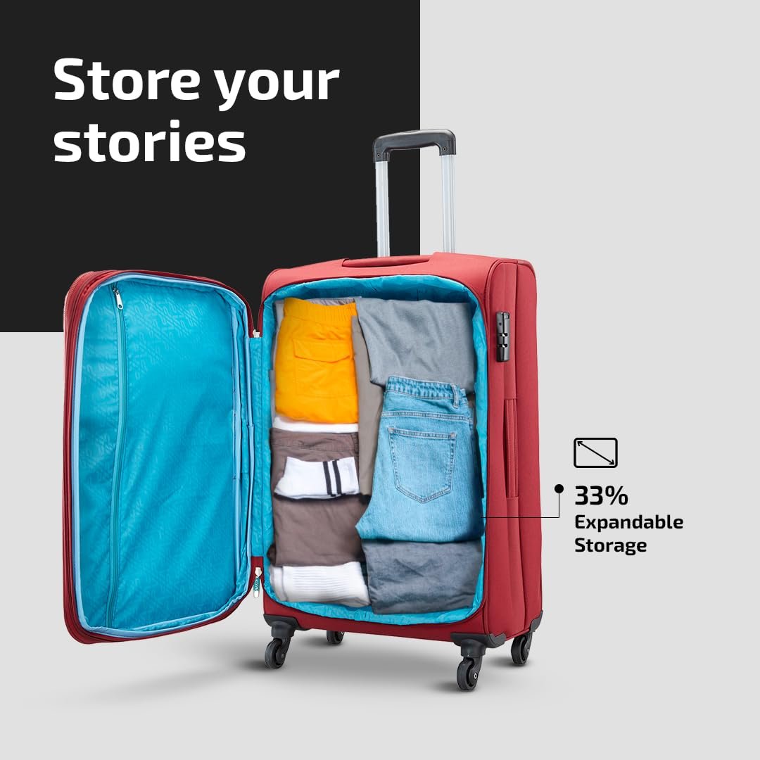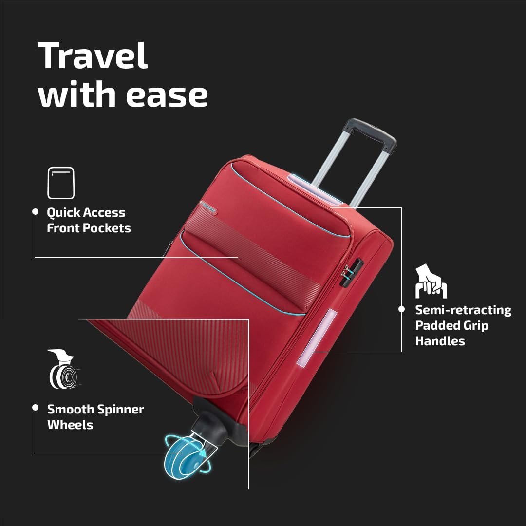 VIP Essencia Durable Polyester Soft Sided Check-in Luggage Spinner Suitcase Dual Wheels with Quick Access Front Pockets (Medium, 69Cm, Red)