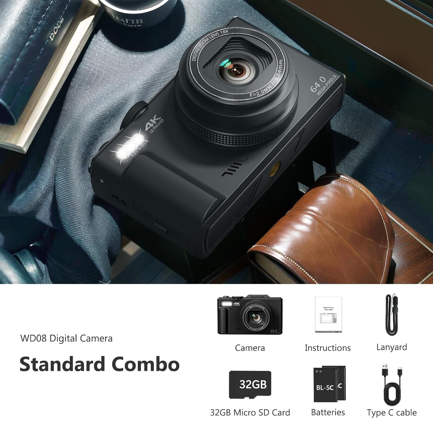 Cheap point and shoot camera with accessories: You can get a 4K ultra HD small camera; 2 batteries; Type-C cable; a camera bag; a lanyard; a user manual [English language not guaranteed[. Perfect gift choice for an anniversary, Christmas, birthday, Father’s Day, Mother’s Day, Halloween.
