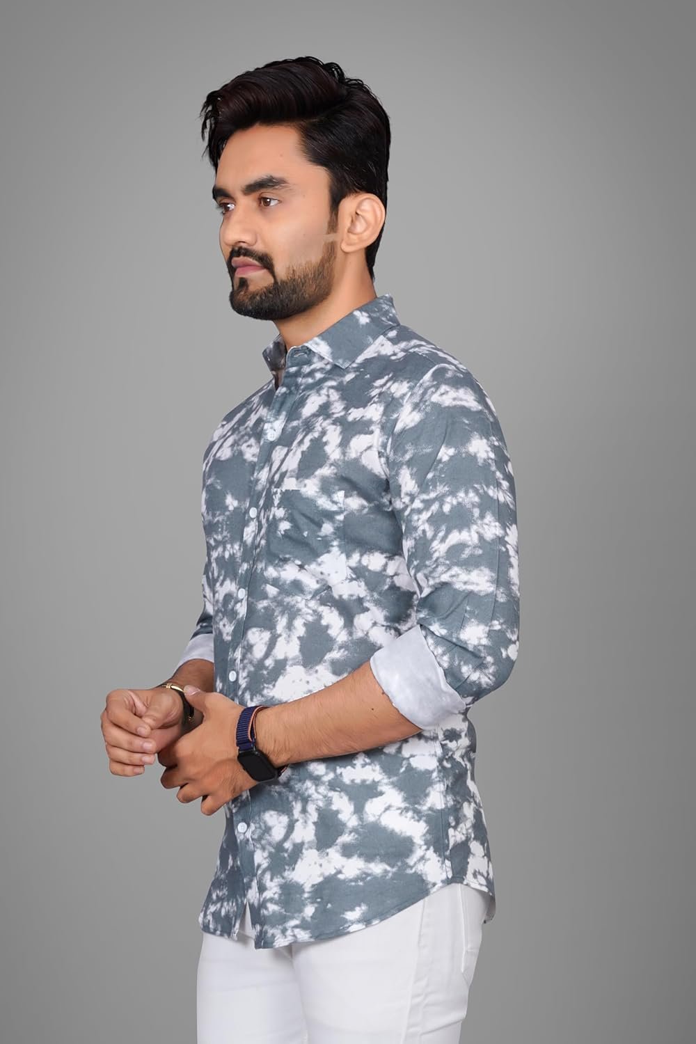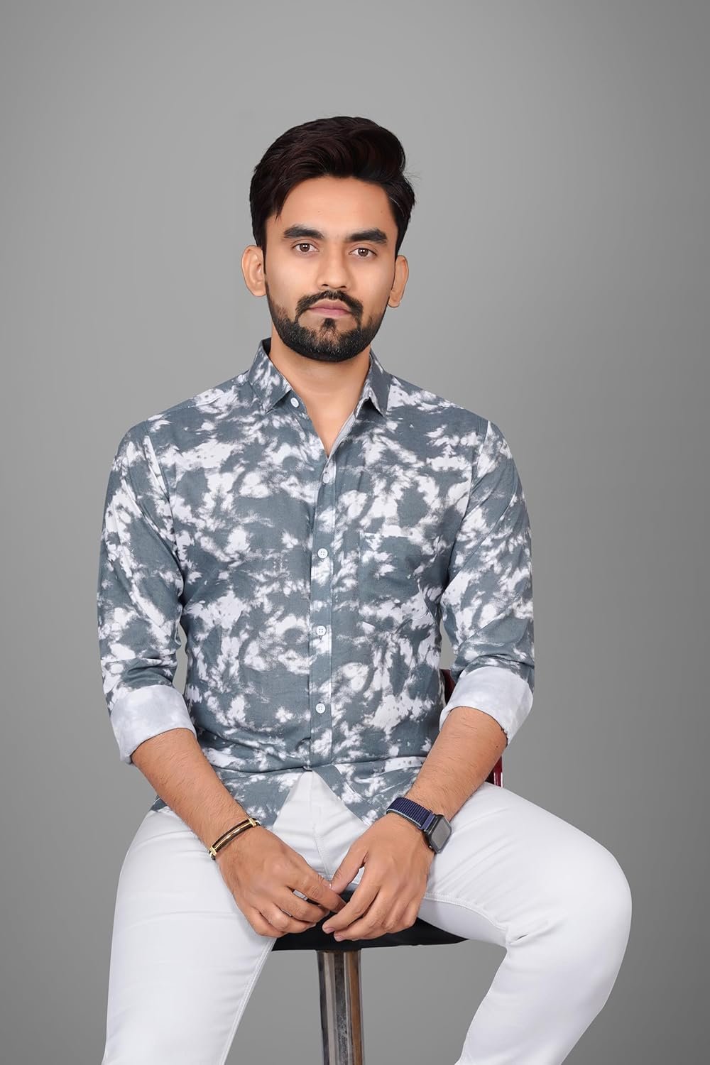 Voroxy Men’s Regular Fit Casual Shirts for Stylish Look Latest Geometric Printed Formal Shirt with Rayon Branded Spread Collar Style Full Sleeves and Office