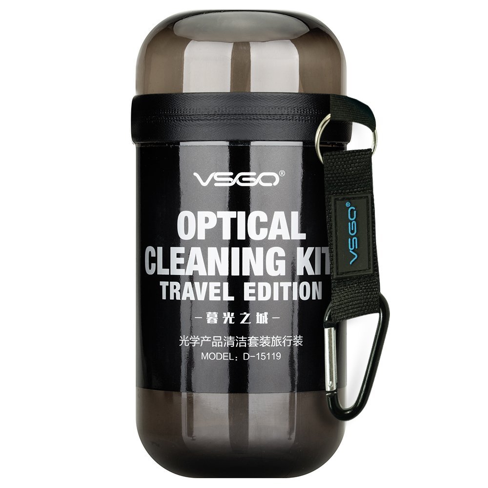 VSGO DKL-15 UES DSL Camera Lens Cleaning Kits: Lens Cleaner, Lens Pen, Microfiber Lens Cleaning Cloth, Air Blower, Wet Wipe, Suede Screen Cloth and Waterproof Bottle Container, Black