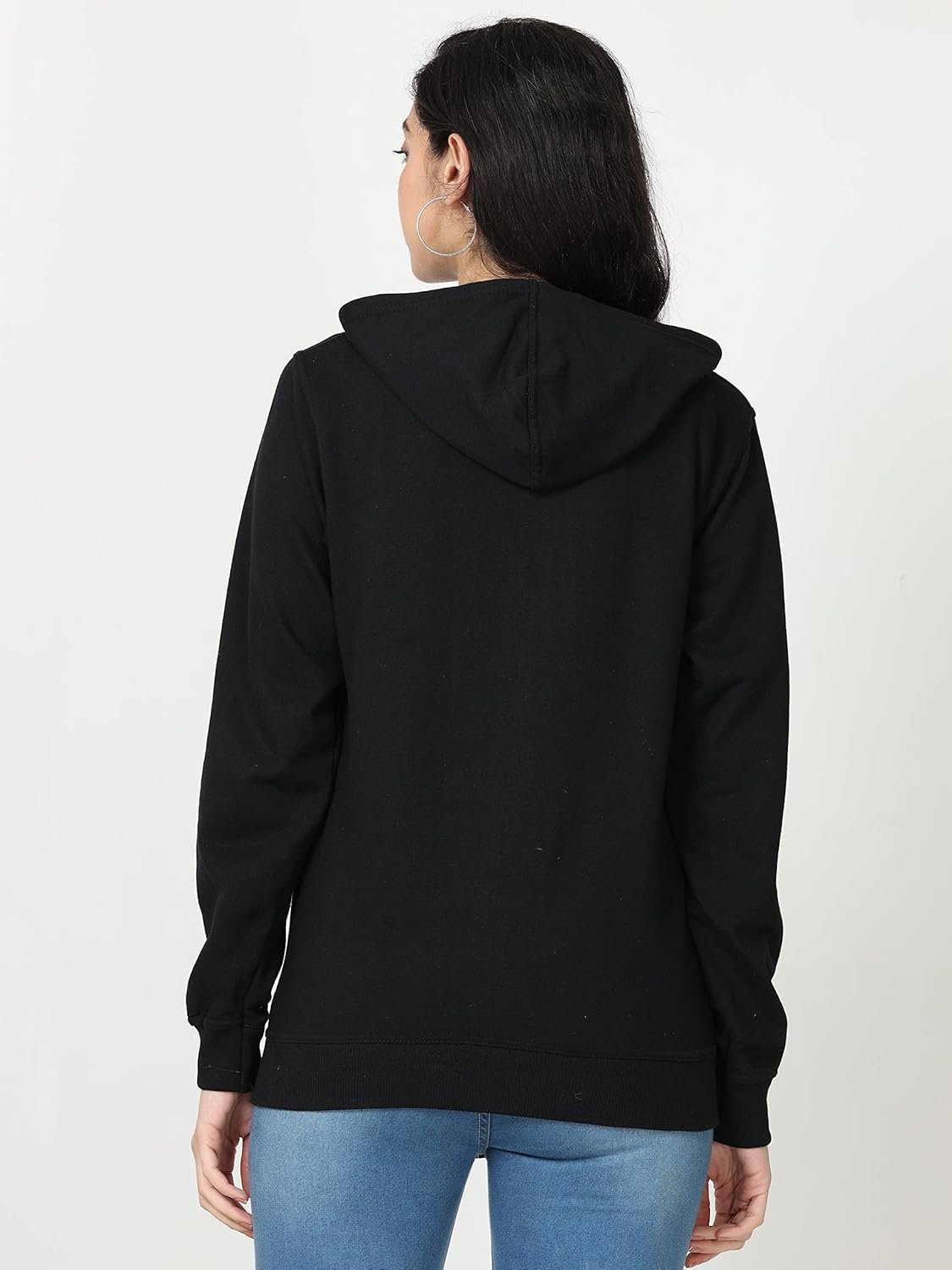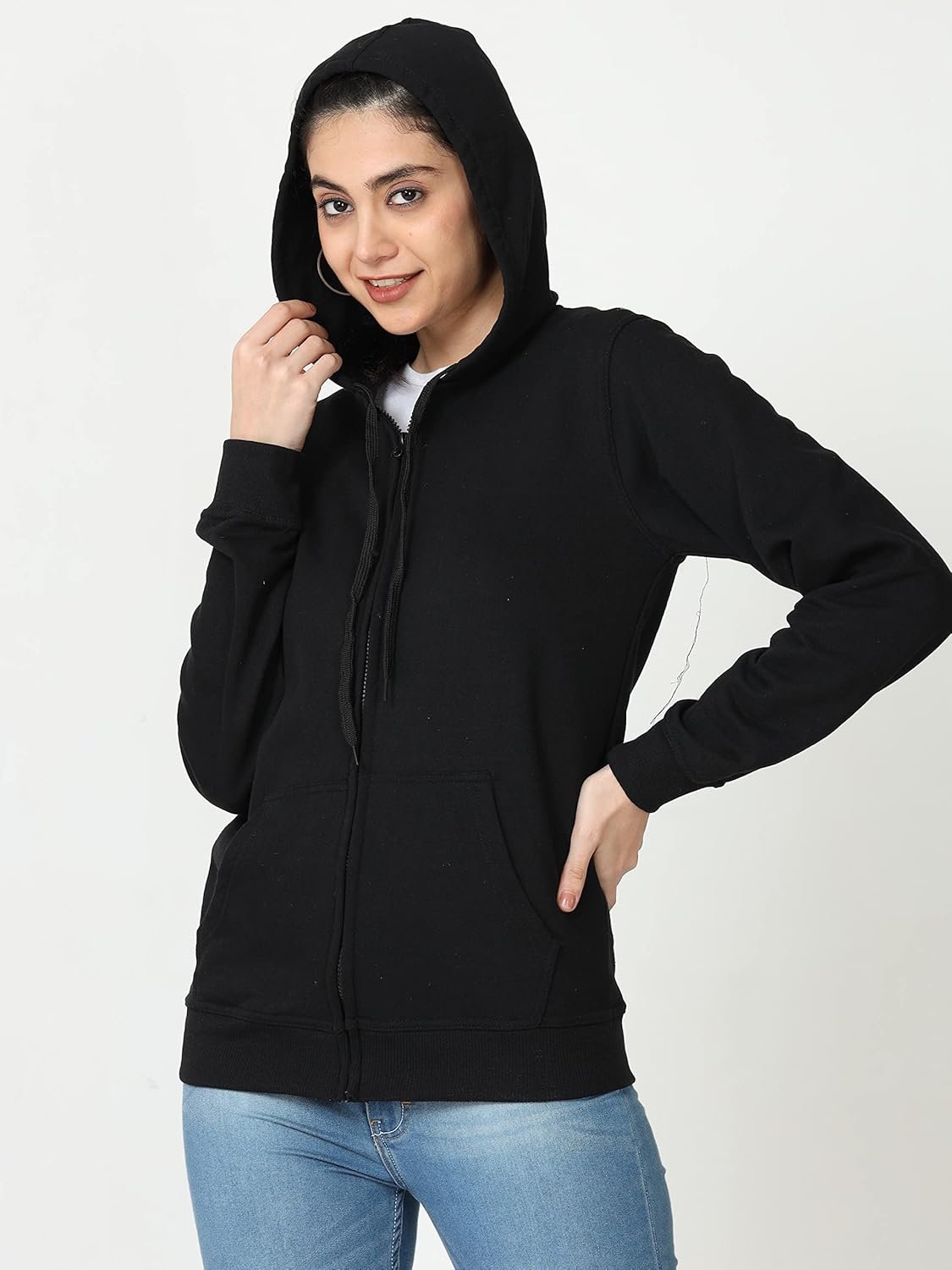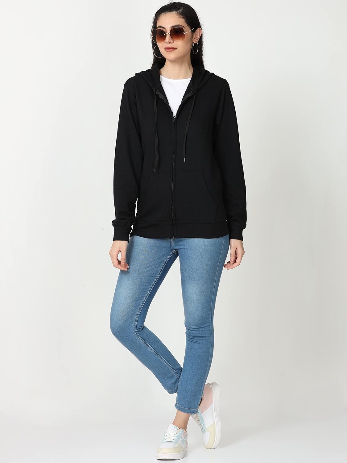 Wafaa Women’s Cotton Plain Hooded Neck Full Zipper Sweatshirt Hoodies with Kangaroo Pocket
