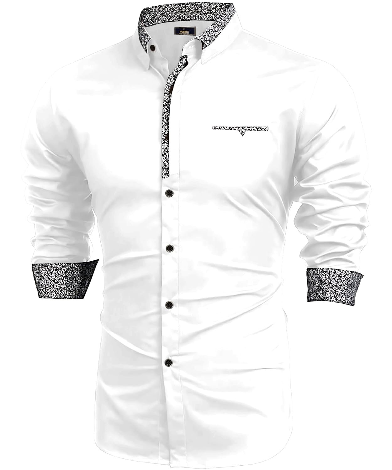 WEBRIC Shirt for Men | Mens Casual Shirt | Men Stylish Shirt | Men Cotton Blend Shirt | Men’s Regular Fit | Men Formal Shirt | Men’s Solid Slim Fit Floral Print Contrast Shirt for Men