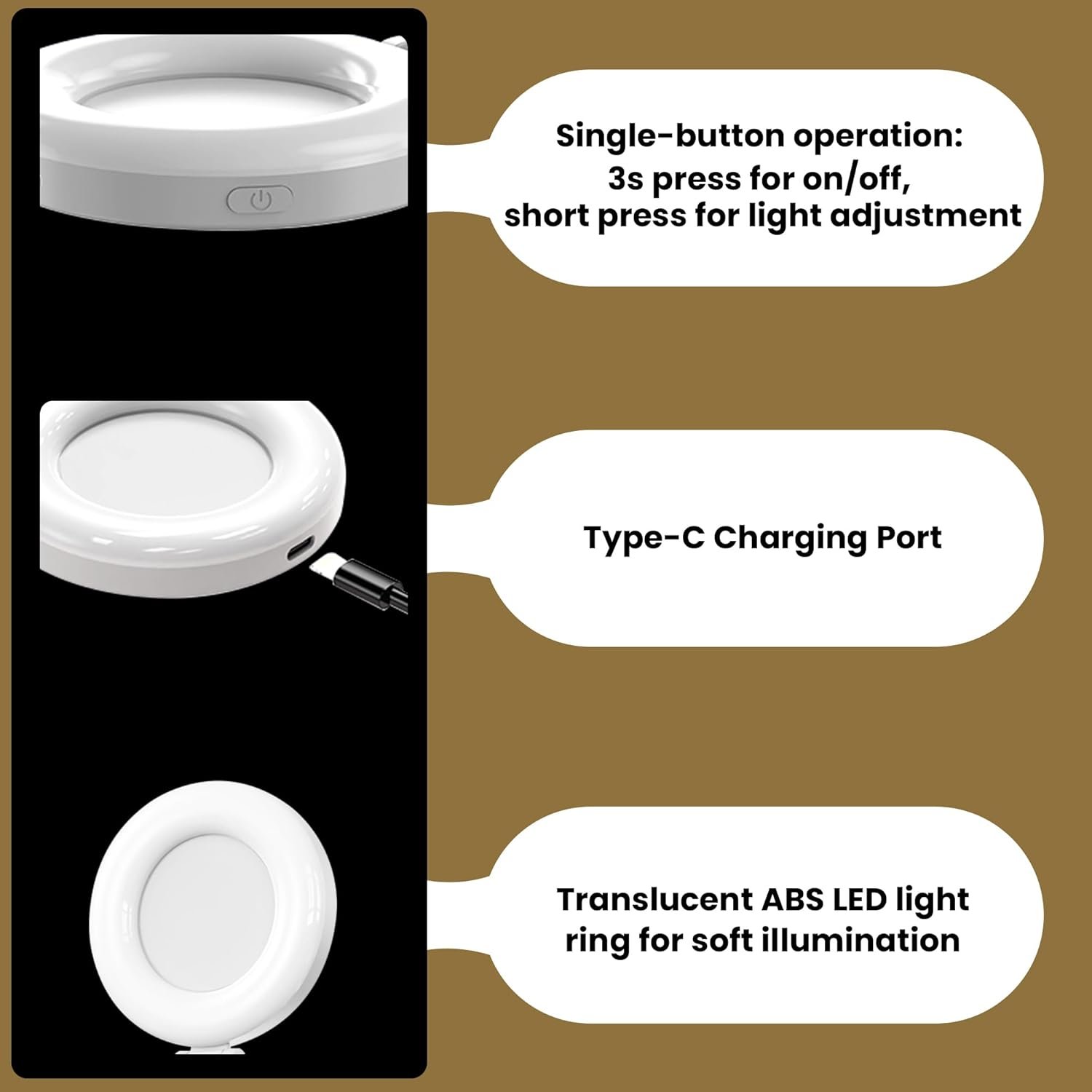 Rechargeable & USB Powered: Comes with a built-in rechargeable battery and supports USB charging. Plug it into your power bank, laptop, or USB adapter to keep your lighting setup always ready—no need to worry about battery replacements.
