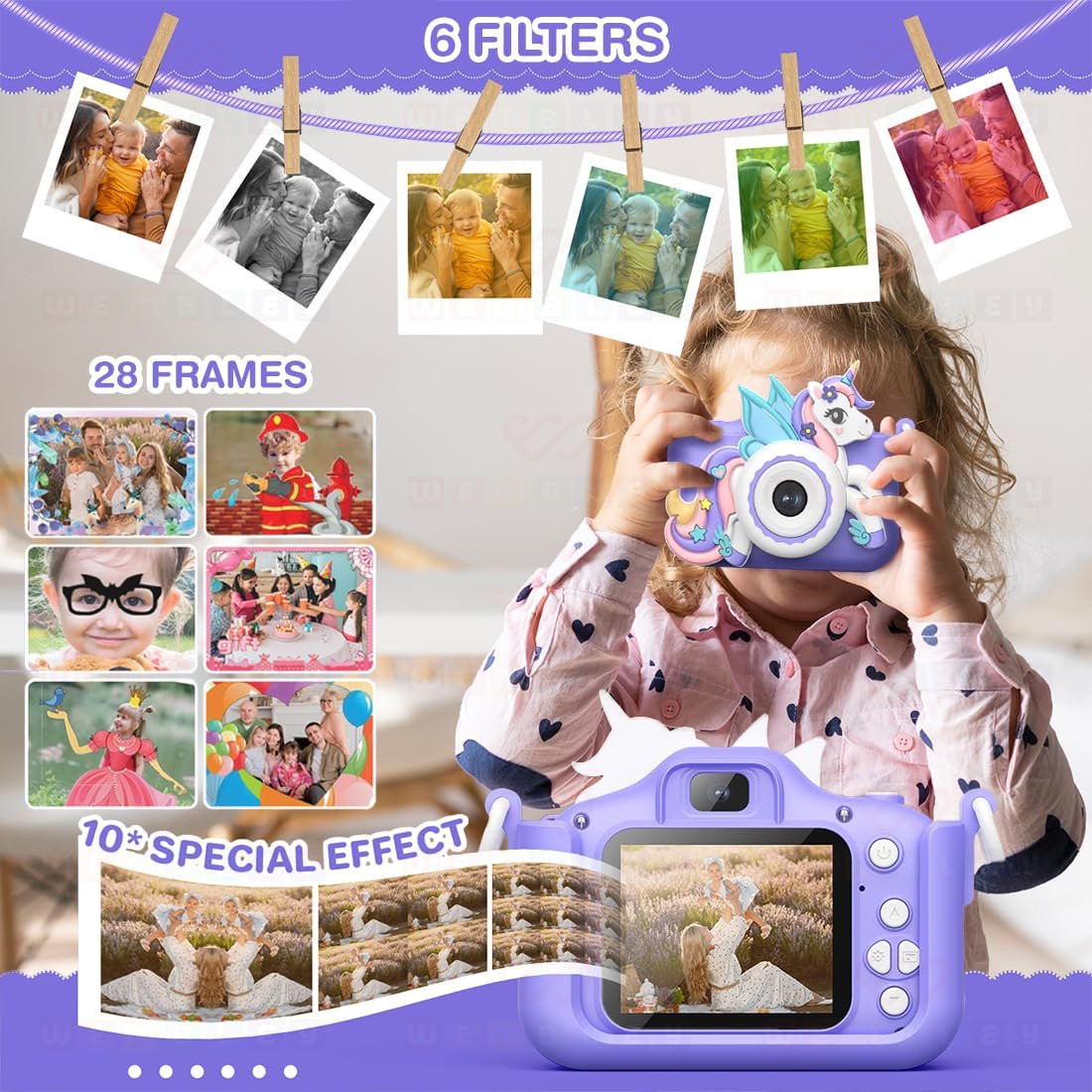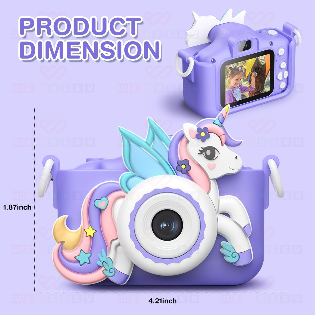 Wembley Kids Digital Camera Compact Unicorn Design Selfie Camera Video Recorder Photo Capture Games 4GB SD Card 2.0 Inch Screen for Girls Boys 4+ 5 6 7 8 – Purple