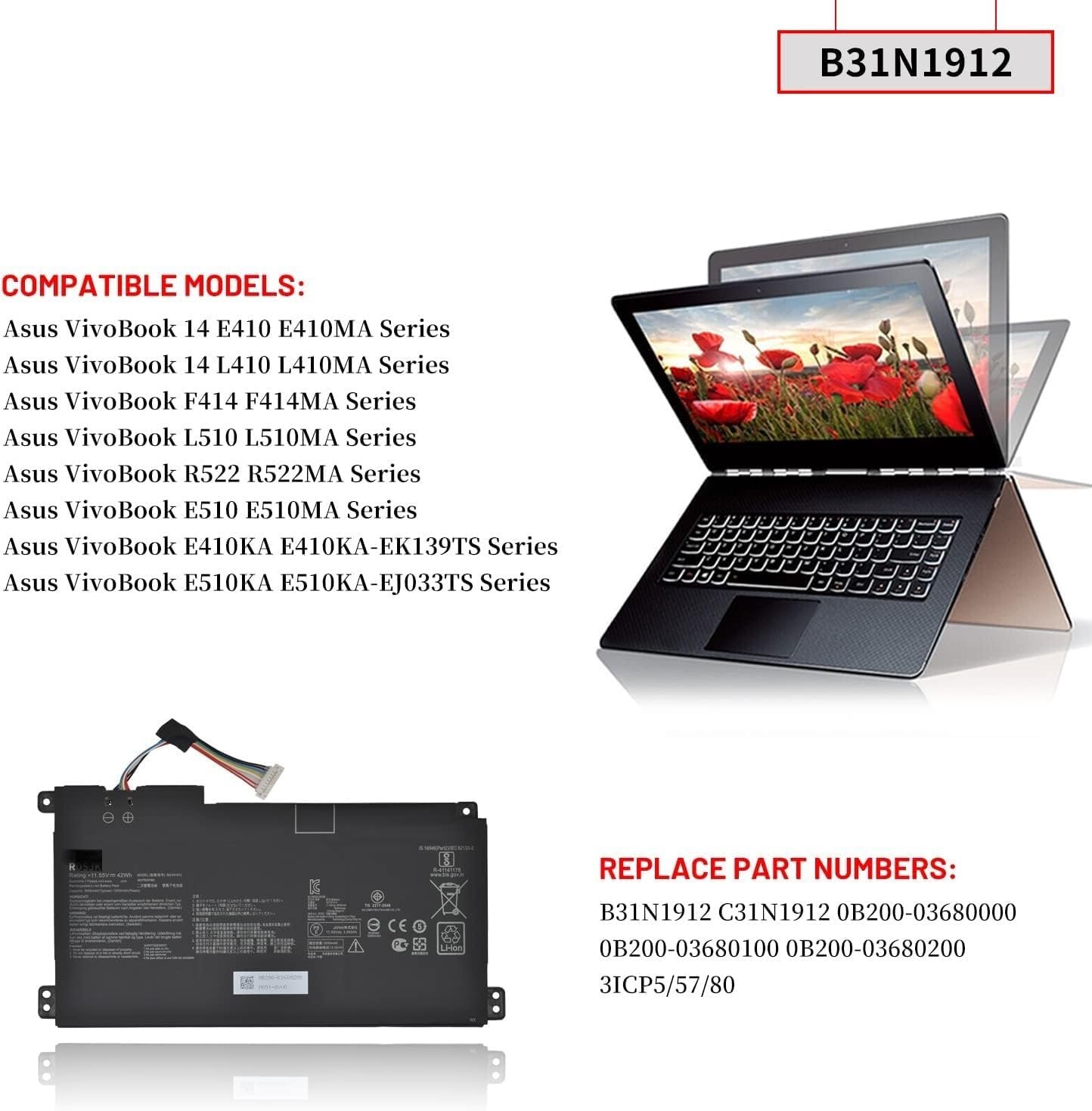 WISTAR B31N1912 C31N1912 Battery Compatible for ASUS 14 15 E410M E410MA L410MA E410KA E510KA E510MA R429MA E410MA-BV1312WS E510MA-EJ614 F414MA-EK1890WS Series