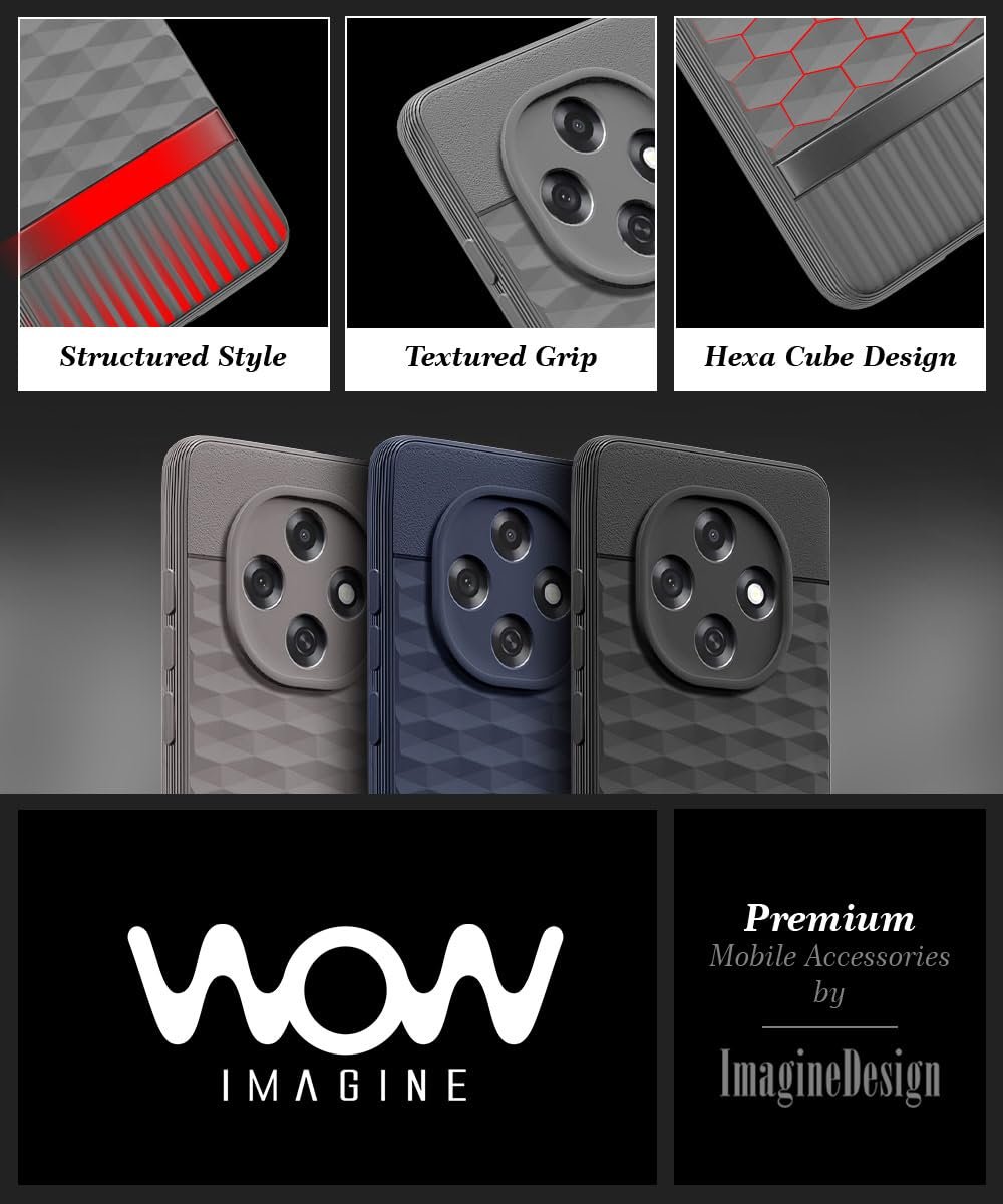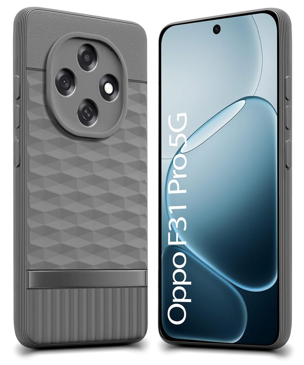 WOW IMAGINE Back Cover for Oppo F31 Pro 5G with Hexa Cube Design | Ultra Slim Soft Rubberised Case | Inner Velvet Fabric | Matte Silicone Flexible Mobile Case | Camera Protection – Grey