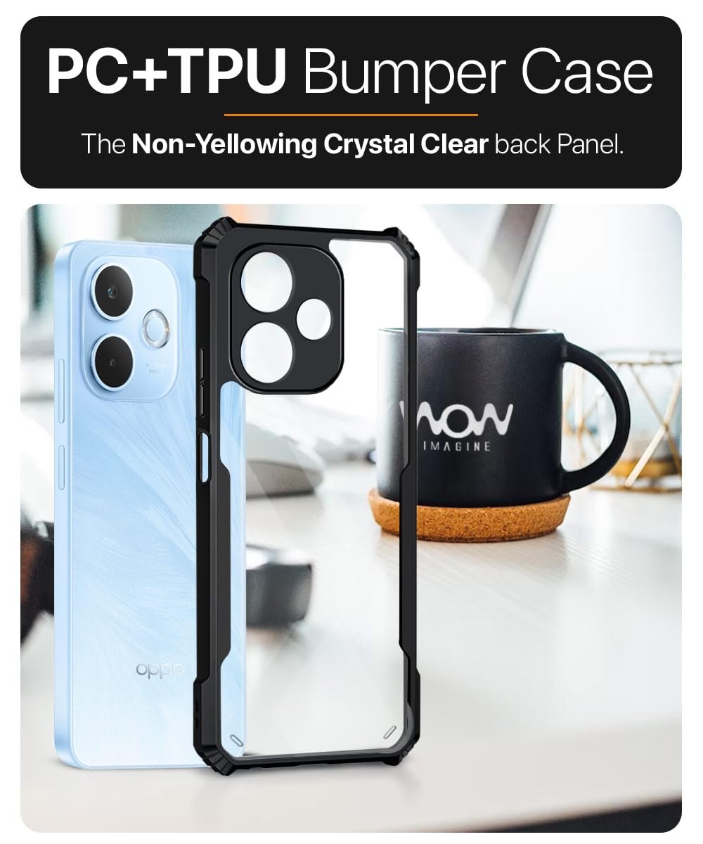 WOW IMAGINE Shock Proof Clear Protective Back Case for Oppo A5 Pro 5G – AirEDGE Technology | 360 Degree Camera Protection | Transparent Hybrid Back Case Mobile Cover – Black