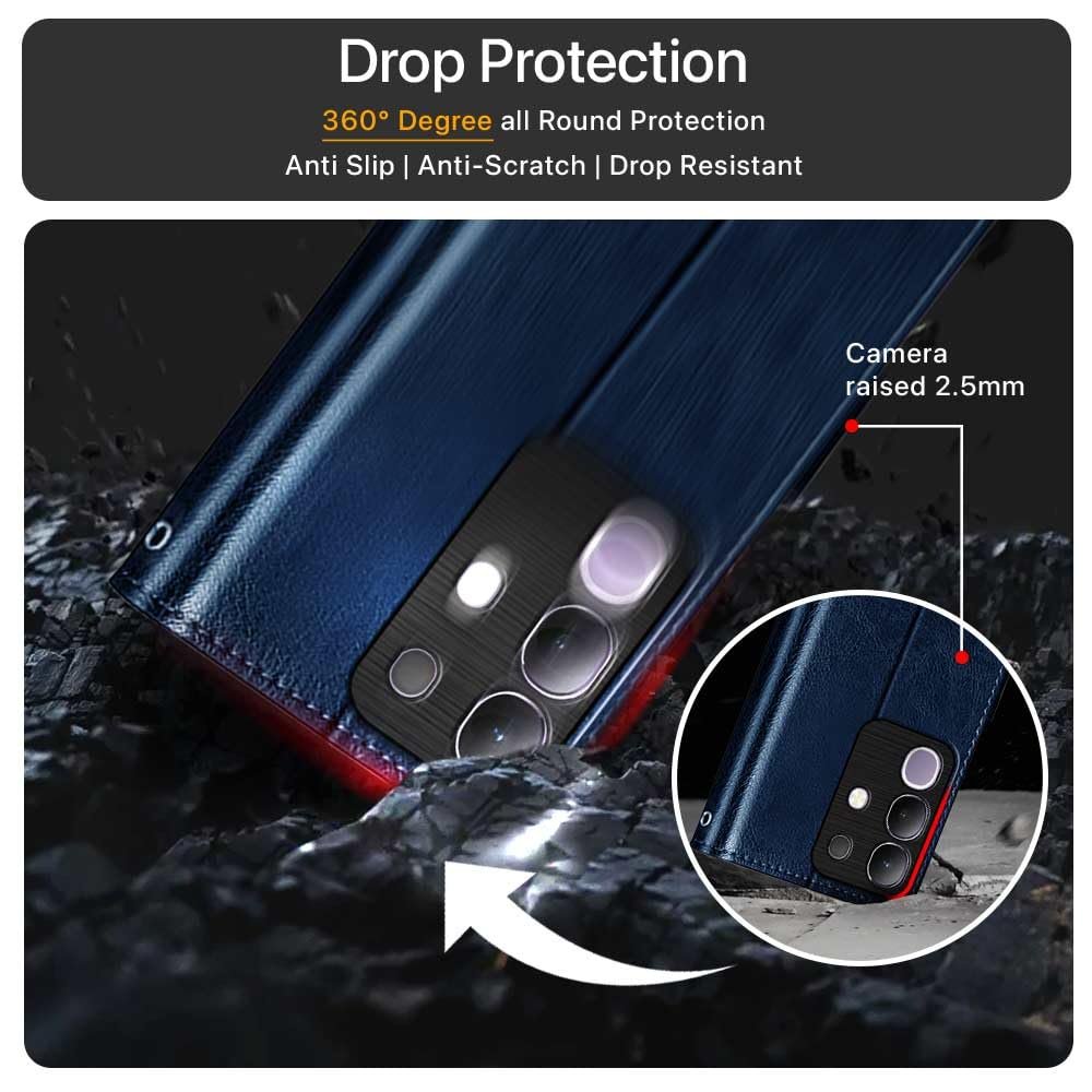 WOW IMAGINE Shock Proof Flip Cover Back Case Cover for Vivo T4x 5G | iQoo Z10x 5G | Vivo Y31 Pro 5G (Flexible | Leather Finish | Card Pockets Wallet & Stand | Blue)