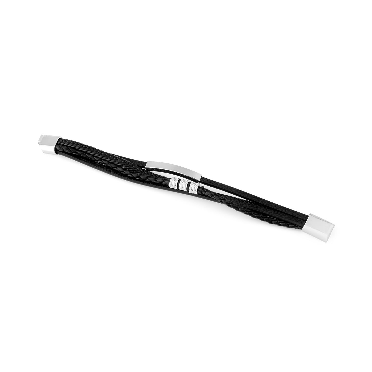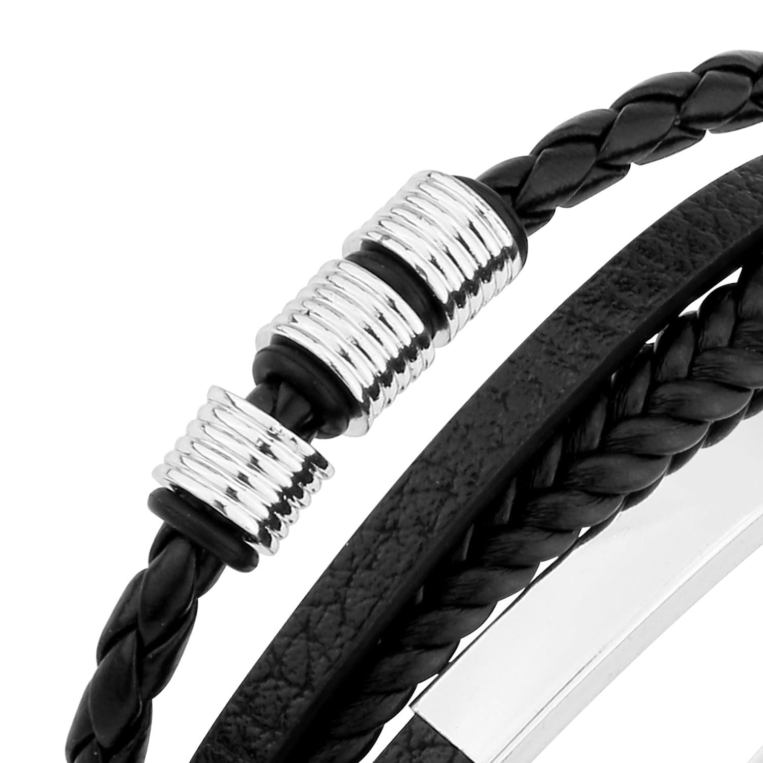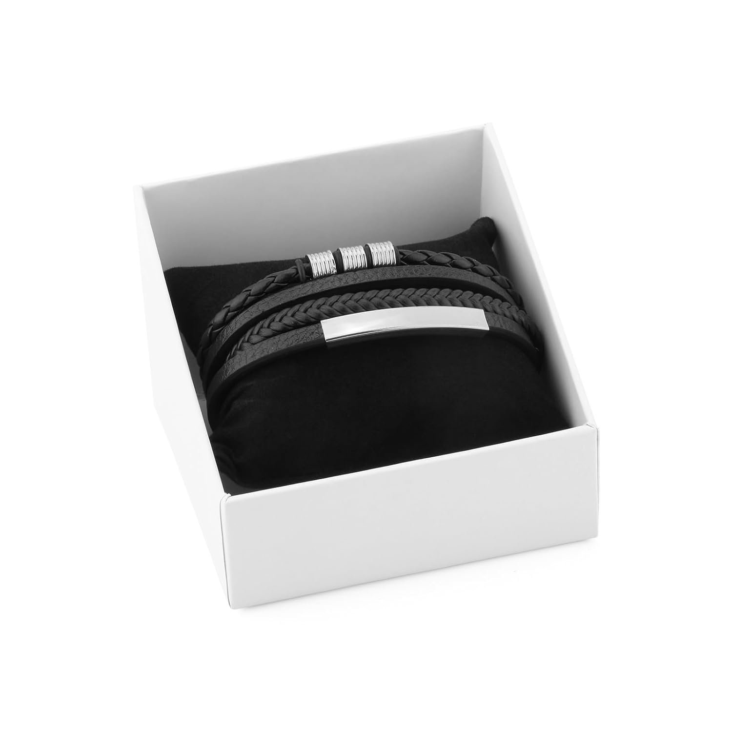UJOY Leather Bracelet for Men Black in Gift Box Silver