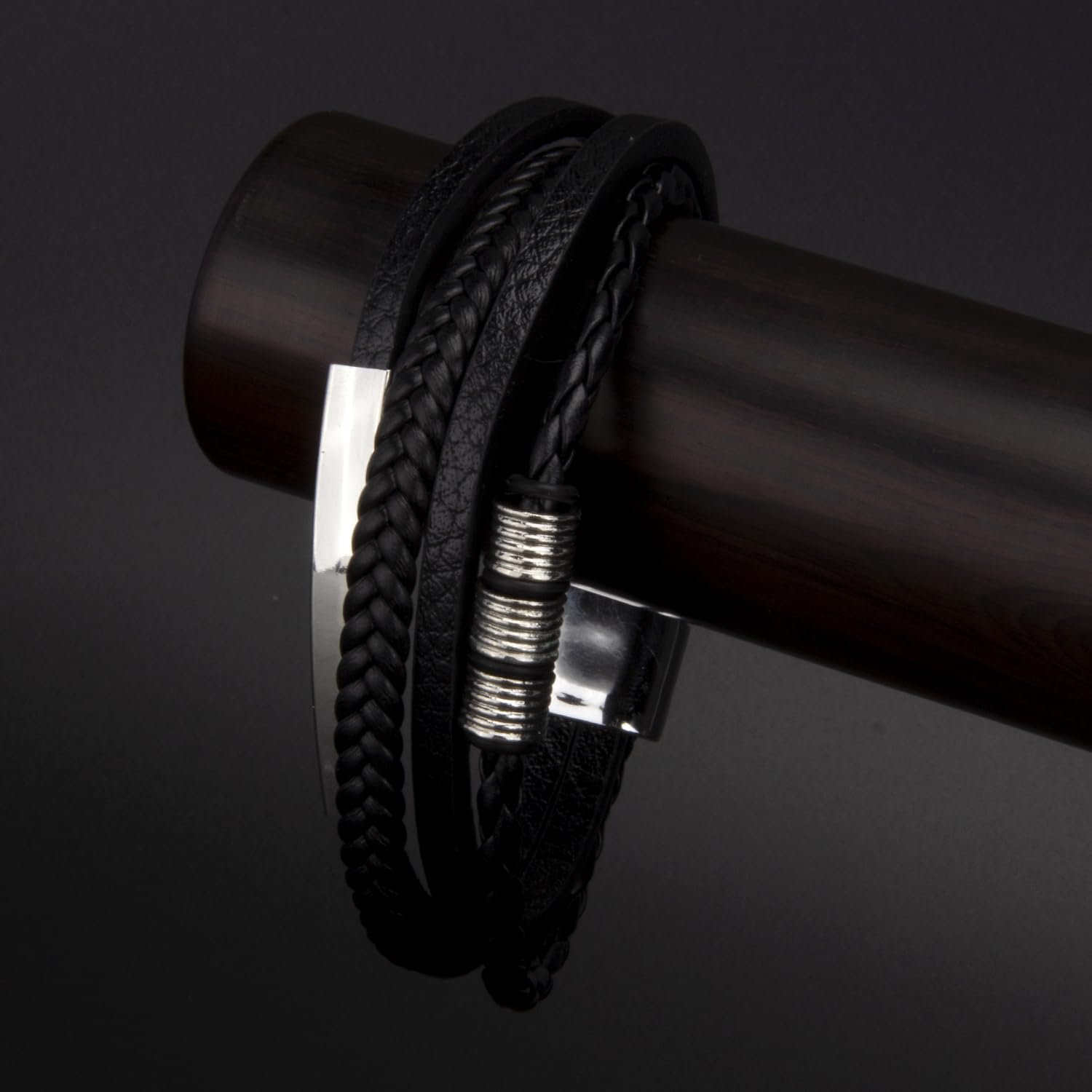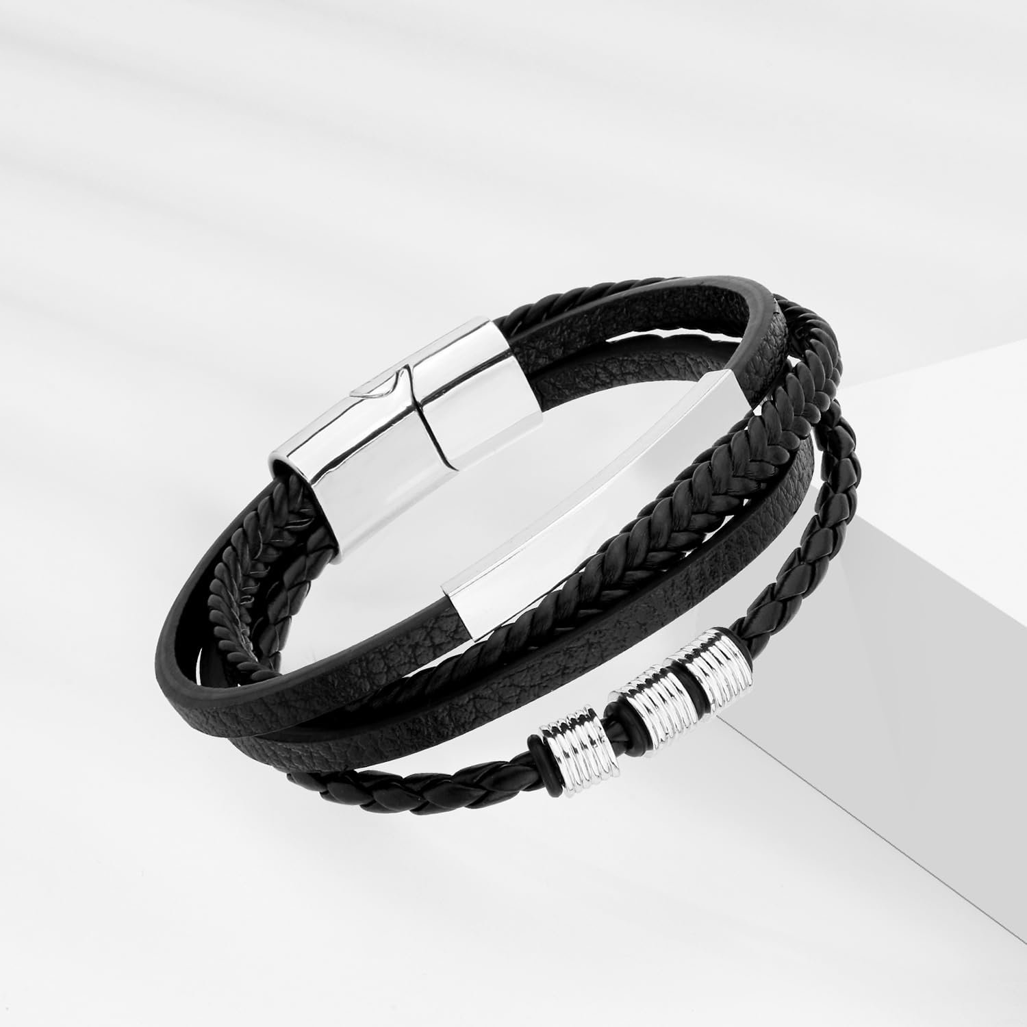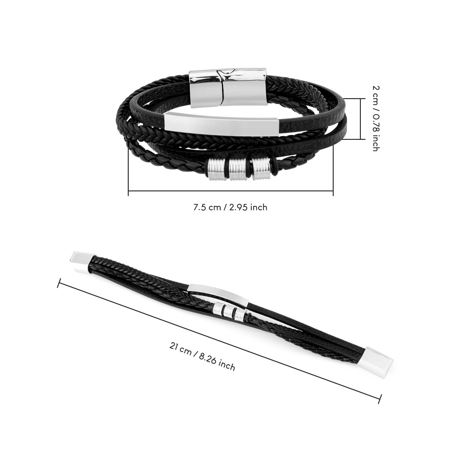 wynameleri Leather Bracelet Black men’s magnetic bracelet in Gift Box