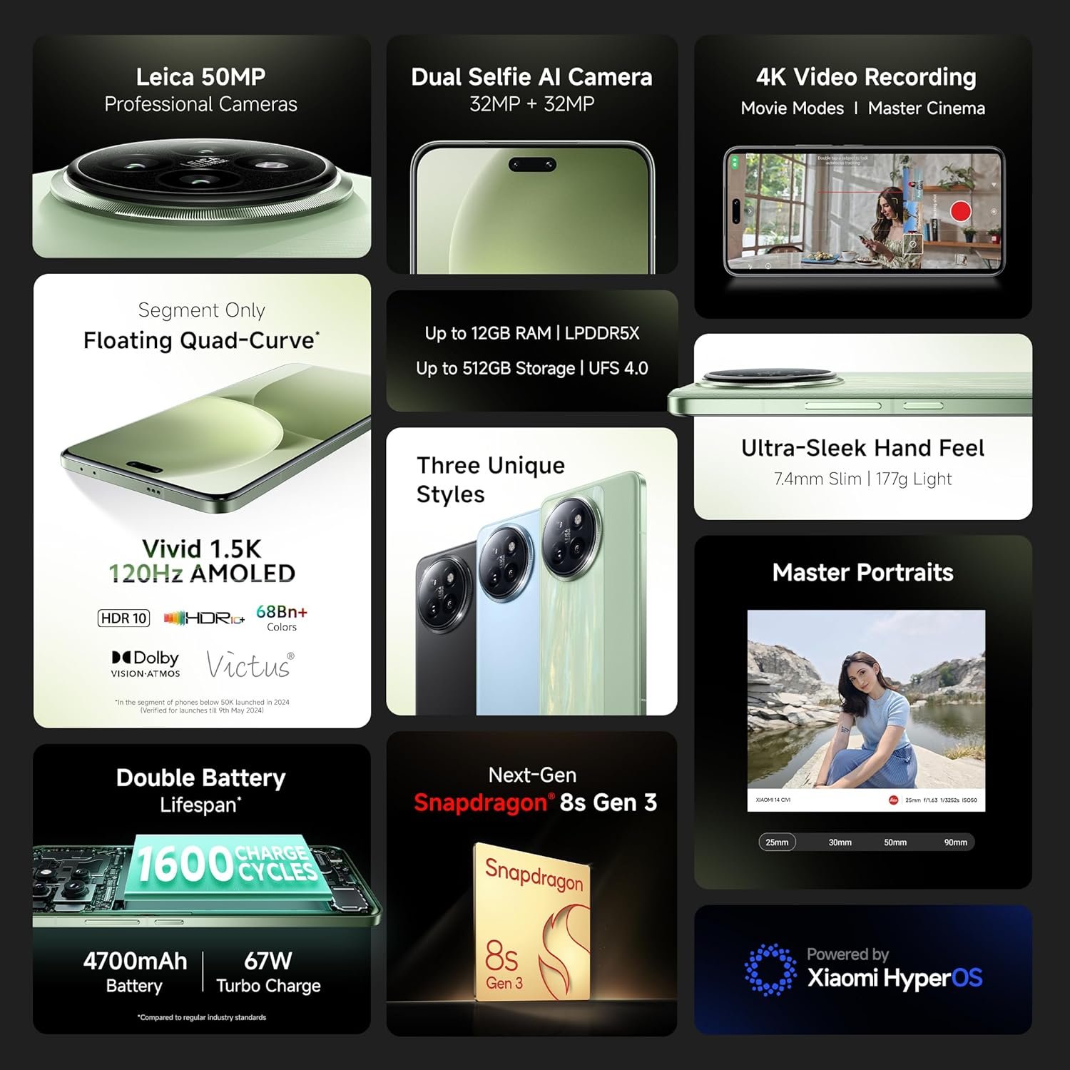XIAOMI 14 Civi Cruise Blue (8GB RAM 256GB Storage) | 50 MP Leica Triple Camera| SD 8s Gen 3 | 1.5K Quad Curved AMOLED HyperOS
