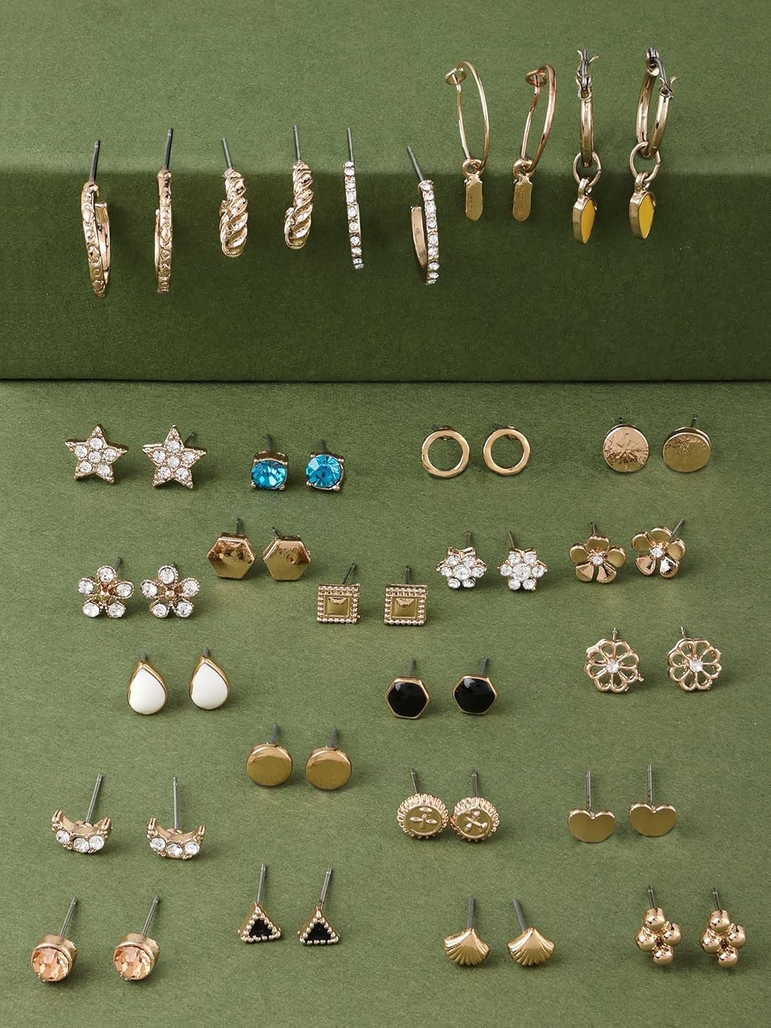 Zaveri Pearls Set Of 25 Gold Tone Smart Casual Wear Studs & Hoop Earrings For Women-ZPFK14053